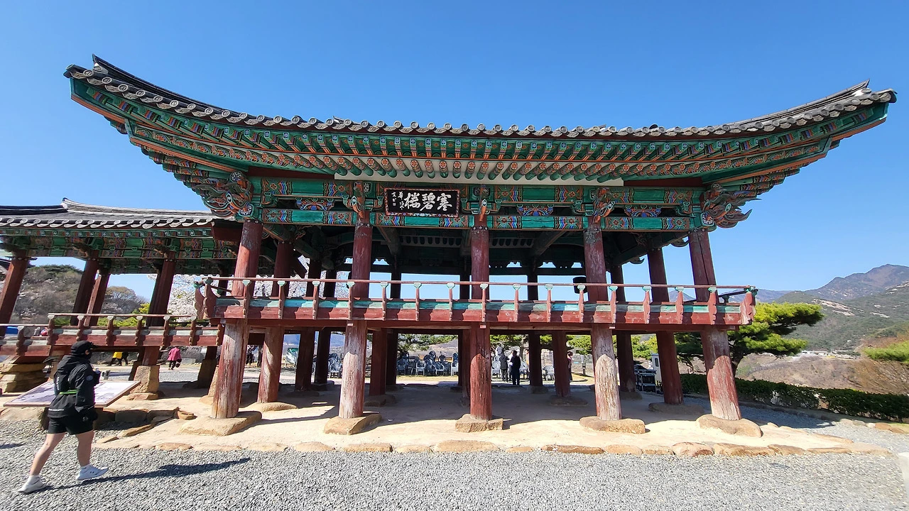 버스가 청풍문화유산단지 앞에 섰다. 팔영루(八詠樓) 계단을 오르자 청풍명월 비석과 한벽루(寒碧樓)가 눈앞을 압도했다. 화려한 단청과 웅장한 누각의 한벽루는 고려 충숙왕 4년(1317)에 청풍현 출신 승려 청공이 왕사가 되어 청풍현이 군으로 승격된 것을 기념하기 위해 세웠다..