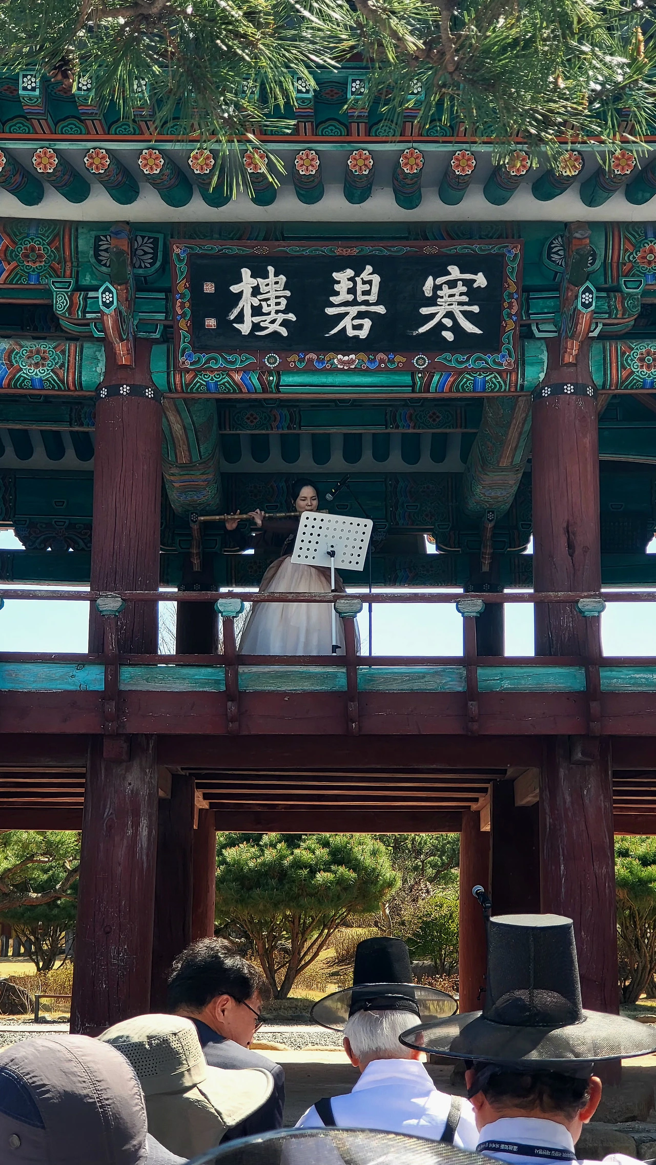퇴계 선생은 젊은 시절 공무 수행 중 저녁 무렵의 한가로운 풍경을 시로 표현했고, 류성룡 대감은 임진왜란의 비통함을 노래했다는 그런 유서 깊은 한벽루. 그 누각 위에서 대금 소리가 울려 퍼졌다. 맑고 가는 선율이 봄바람을 타고 흘러내렸다. 누각 위에서 대금을 부는 저 여인, 한 시간 전