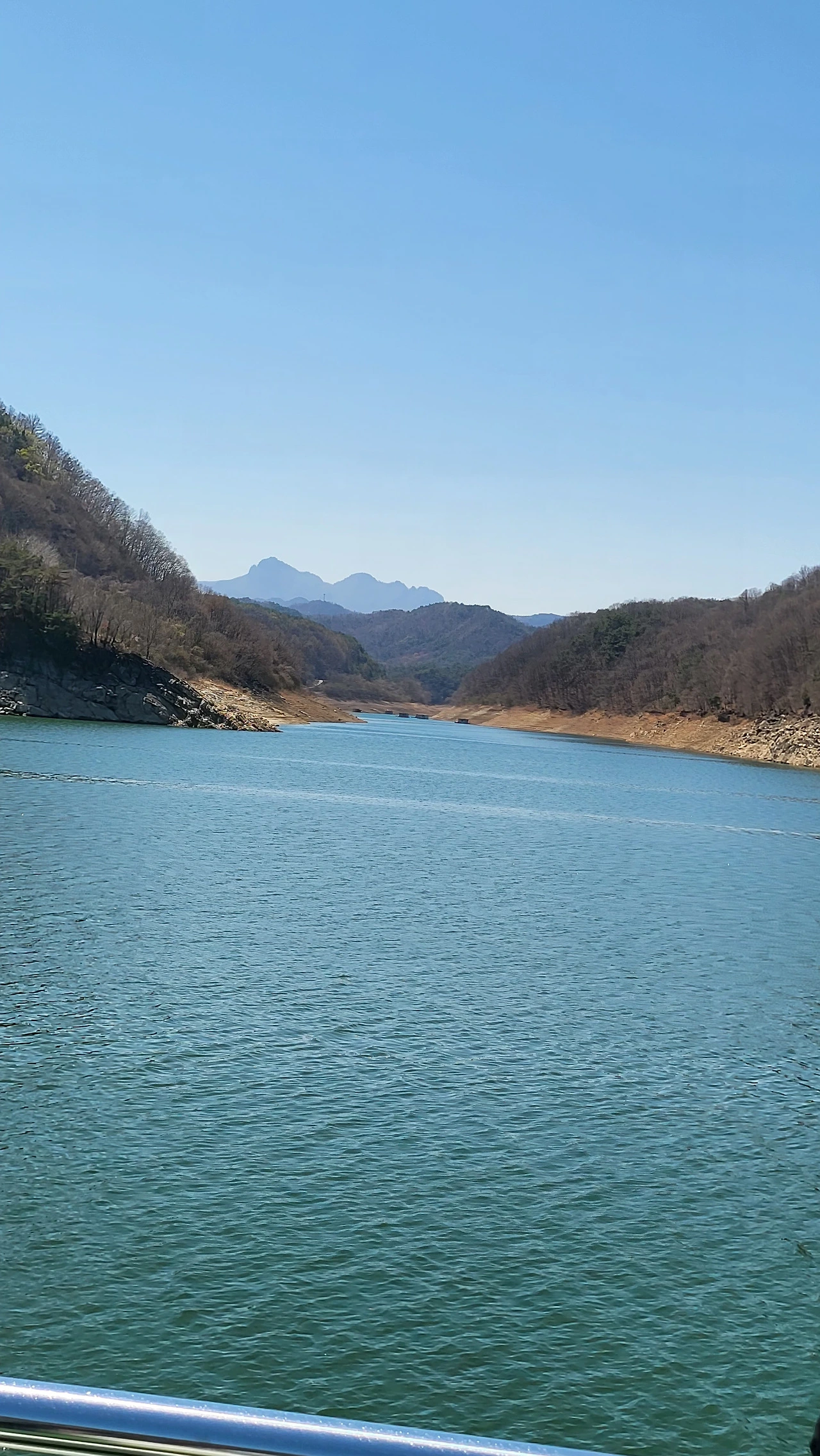 사방이 산으로 둘러싸인 호젓한 호수를 배가 가로질렀다. 유유히, 구담봉을 향해.