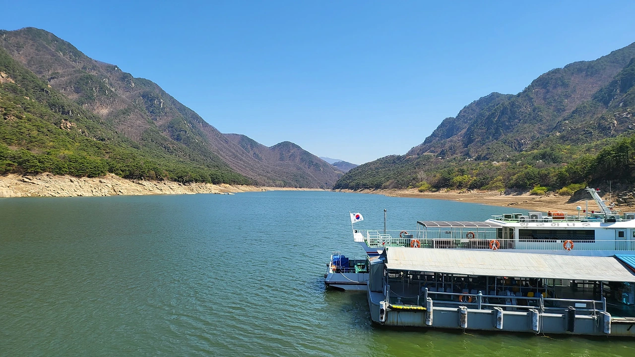 드디어 장회(長淮) 선착장에 닿았다. 태극기를 단 배가 선착장에 부드럽게 멈추었다. 양쪽 산이 V자로 품어주는 그 안에 배가 조용히 접안했다. 발목 통증 생긱하면 단양향교까지 계속 배를 타고 이 물길을 따라가고 싶었다. 그러나 일정은 기다려주지 않는다. 장회 선착장에서 하선하여 이제 점심을 먹고 다시 두 발로 걷는 길이 시작될 것이다.