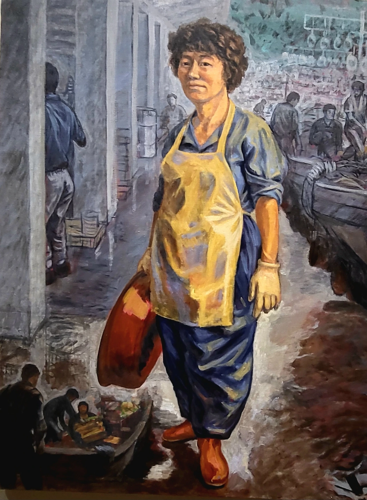 자연 속의 속삭임이 가득한 시립미술관 박광진 전시회에서 마주한 수많은 그림 중에서도 제주 여인의 삶을 담은 그림이 가장 깊은 울림을 주었다. 어떻게든 살아내야만 했고, 살고자 했던 본능의 강인한 의지가 깃든 우리들의 어머니요, 누나이며, 언니인 그 바닷가 여인의 모습에 마음속 깊은 박수를 보냈다. 특히 거북귀(龜) 자의 꼬리처럼 길게 뻗은 획 ⻱가 오래도록 여운을 남겼다. 어떤 의미로 글씨를 쓰고 전시했는지 의문이 들어 먼발치 있던 스태프에게 물었으나 답을 얻지 못했다. 한자 전문가 전성배 학자께 사진과 함께 해설을 요청해 둔 터라 그 답변이 기다려진다. 물론 장수라는 의미는 알겠지만...