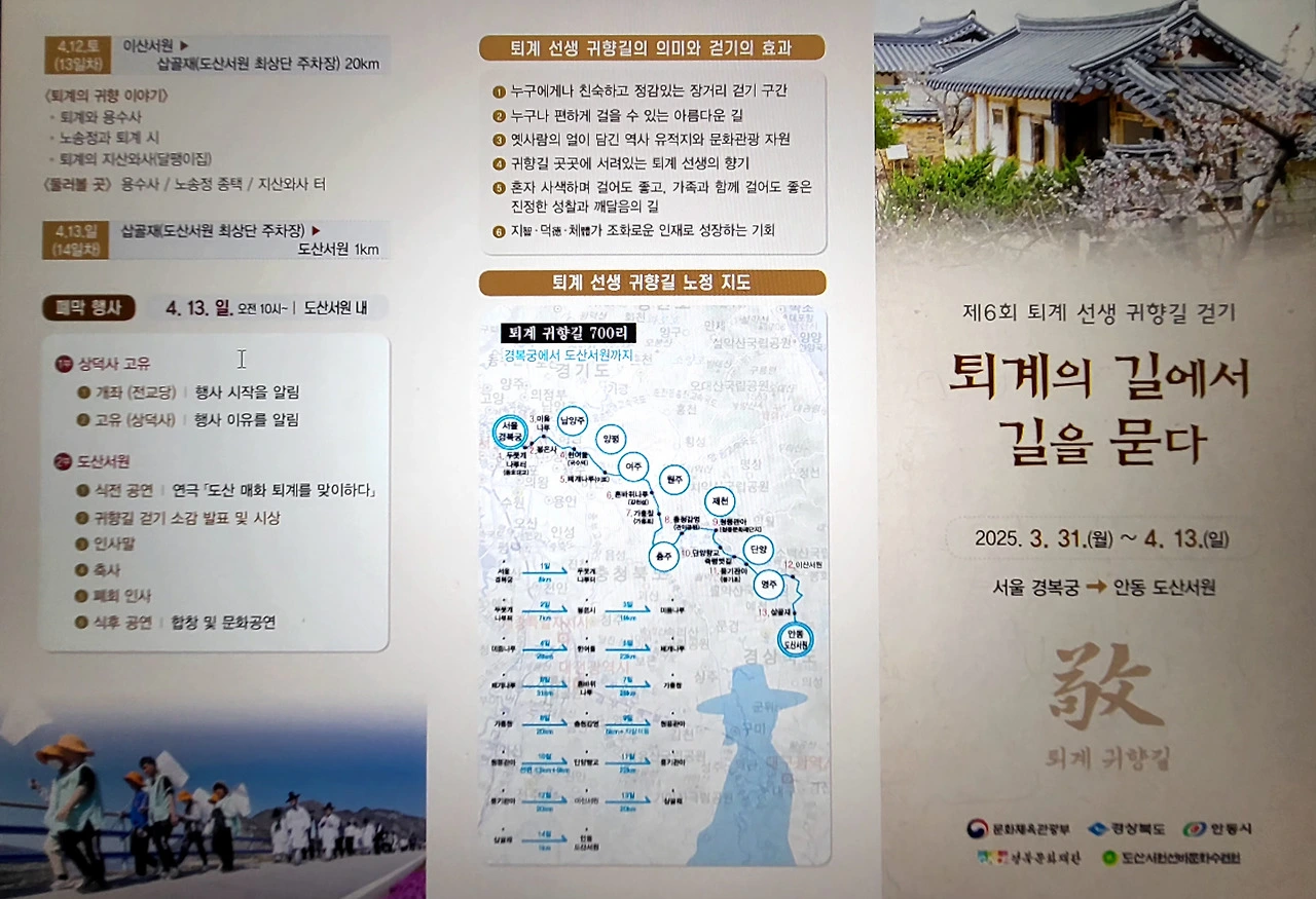 애당초 지난 3월 말, 설레는 마음으로 '제6회 퇴계의 길에서 길을 묻다. 퇴계 귀향길 700리' 걷기 프로그램에 참여할 예정이었다.