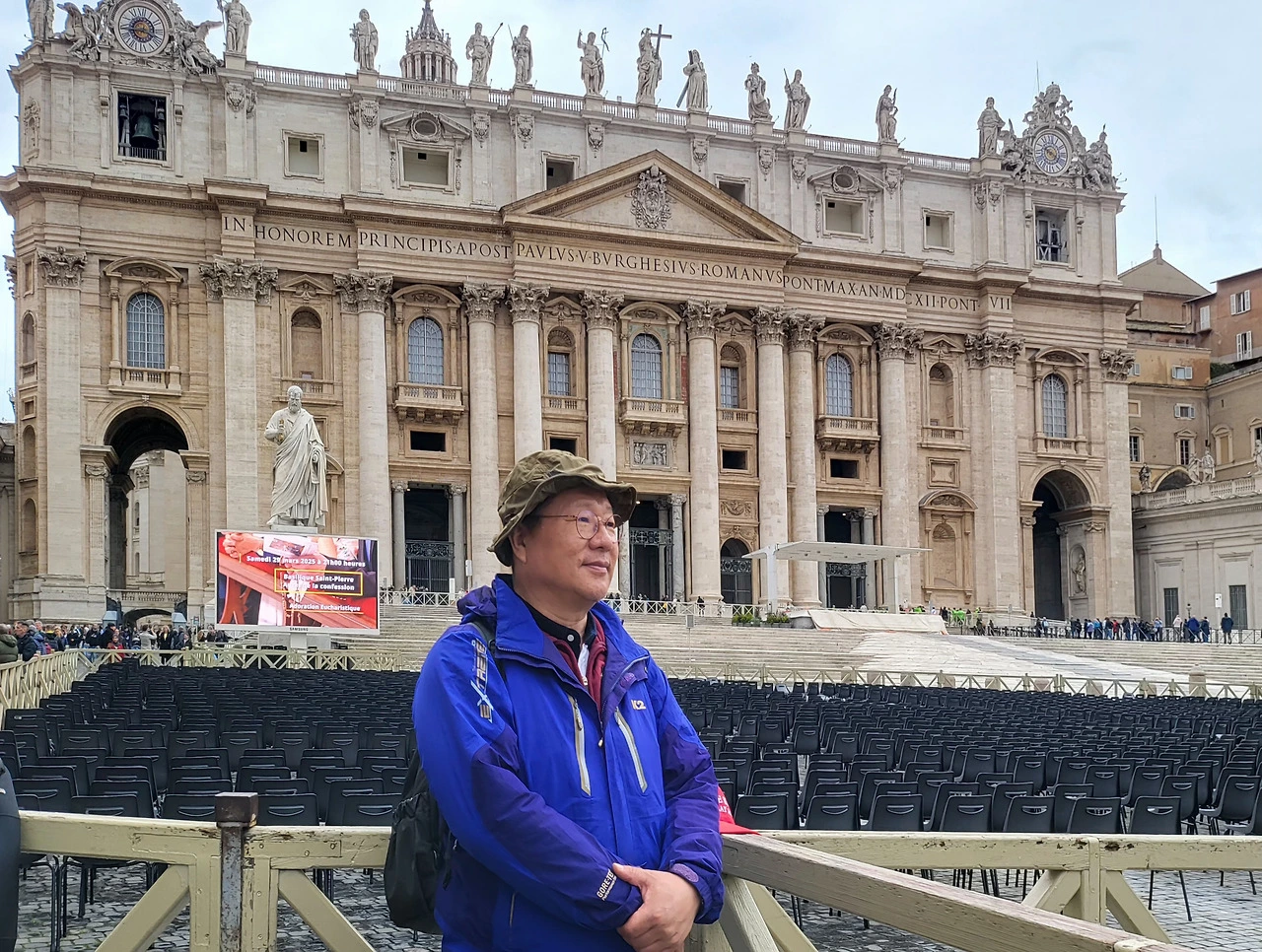 그러던 차 예정이 없던 지난 3월 25일, 특별히 할인된 로마 왕복 항공권을 아이들이 어버이날 기념 감사 효도 선물티켓으로 바티칸 시국 교황청 등 로마를 다녀왔다. 마침 그때는 윤석열 대통령 탄핵심판 일주일 전 정치적 격변기로 마음이 무척 불편했지만, 아이들의 정성과 베드로 성당 가까이에 다가가 교황님의 쾌유를 기원드리고 유흥식 추기경님의 안부도 여쭙고 싶었던 충동감 또한 컸던 것도 사실이었다. 하지만 라자로 유흥식 추기경님은 런던 출장 중이셨고, 교황님께는 베드로 성당 내에서 묵상의 시간만 가질 수밖에 없었다. 그럼에도 늘 사회적 약자와 함께하시며 푸근하고 인자하신 교황님을 교황님이 계신 바티칸시국 교황청 베드로 성당에서 함께 호흡하고 기도드렸던 그 기회가 있어서 기뻤고, 그러한 기도를 드릴 수 있었던 것이 행복했다.