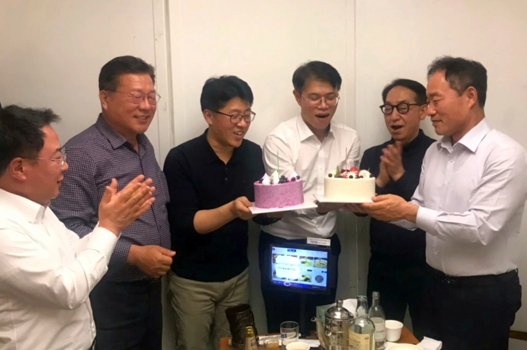 당초 승진한 후배들도 참석하는 줄 예상하지 못했다. 촛불이라도 밝혀 주어야겠다는 마음이 꿈틀댄다. 식사 테이블에서 조용히 카운터로 나가 서빙하시는 분께 케이크 한 개에 붉은 긴 초 두 개를 부탁드렸다. 그런데 웬걸, 케이크를 두 개를 사 오셨다.