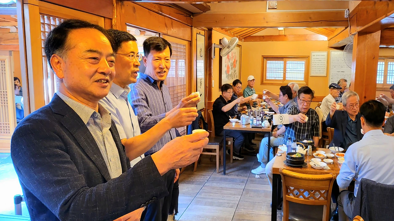 오늘따라 이 삼계탕의 맛이 더욱 각별하게 느껴진다. 뜨끈한 국물이 목구멍을 타고 내려가며 몸 전체로 퍼지는 따스함, 젓가락으로 살짝 건드리기만 해도 부드럽게 발라지는 닭살의 부드러움에서 진짜 힘이 솟아나는 것 같다. 이 귀한 자리를 준비해 주신 우리은행 을지로 동우회 유중근 회장께 진심으로 감사하다. 아니 유중근 회장은 먼 길 마다하지 않고 오신 동우 한 분 한 분께 정중히 인사를 드렸다.