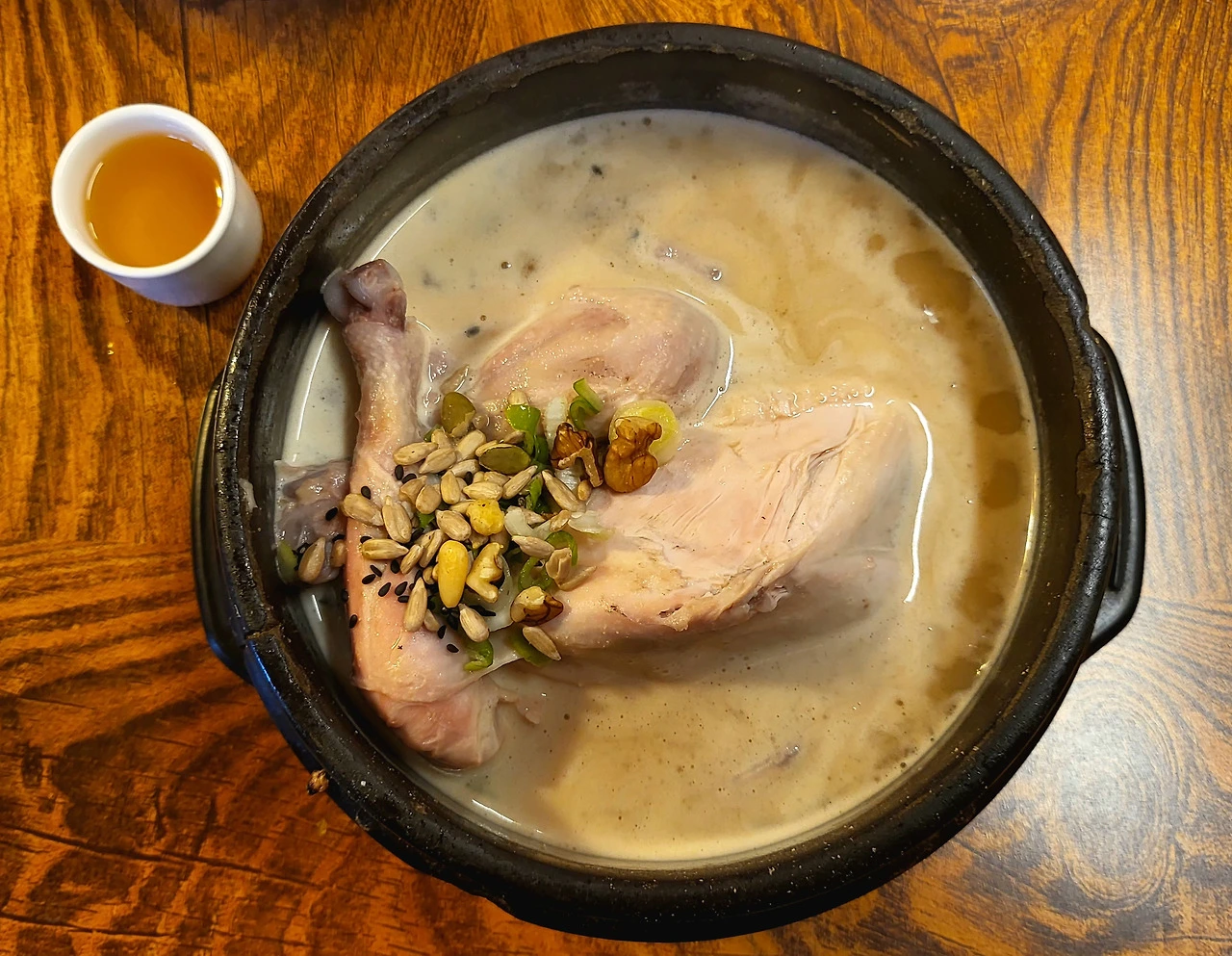 그렇게 정성스럽게 손질된 하림그룹 올품 공장에서 보급된 싱싱한 닭들은 4년생 인삼, 찹쌀, 호박씨, 검정깨, 호두, 토종밤, 대추, 은행, 마늘, 해바라기씨 등 수많은 특수 재료와 만나 '토속 삼계탕'으로 다시 태어난다. 김이 모락모락 피어오르는 뚝배기 속에서 오묘한 향내와 깊은 미각은 물론, 자양강장의 기운까지 더해진 이 한 그릇은 단순한 음식이 아니다. 옻닭을 비롯해 연산에서 유명한 임금님 수라상에도 올랐던 오골계까지, 다양한 닭고기를 선택할 수 있다.