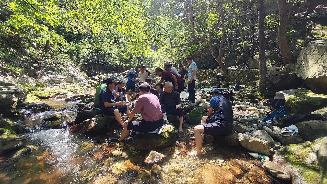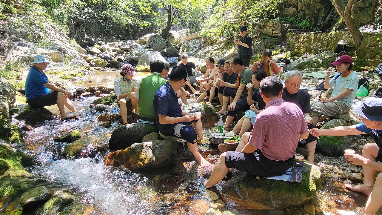 을사년 여름 끝자락, 자랑스러운 우리은행 동우회 8월의 이사회는 요즘 말로 'off site'였다. 94년과 95년 근무했던 을지로지점 건물 3층 사무실을 벗어나 유명산 계곡으로 향했다. 그토록 뜨거웠던 7월 말 8월 초를 뒤로 하고, 계곡물에 발 담그고 탁배기에 풋고추 다금바리(멸치) 안주 삼아, 당도 높은 제철 최고 꿀맛 수박도 맛보고…