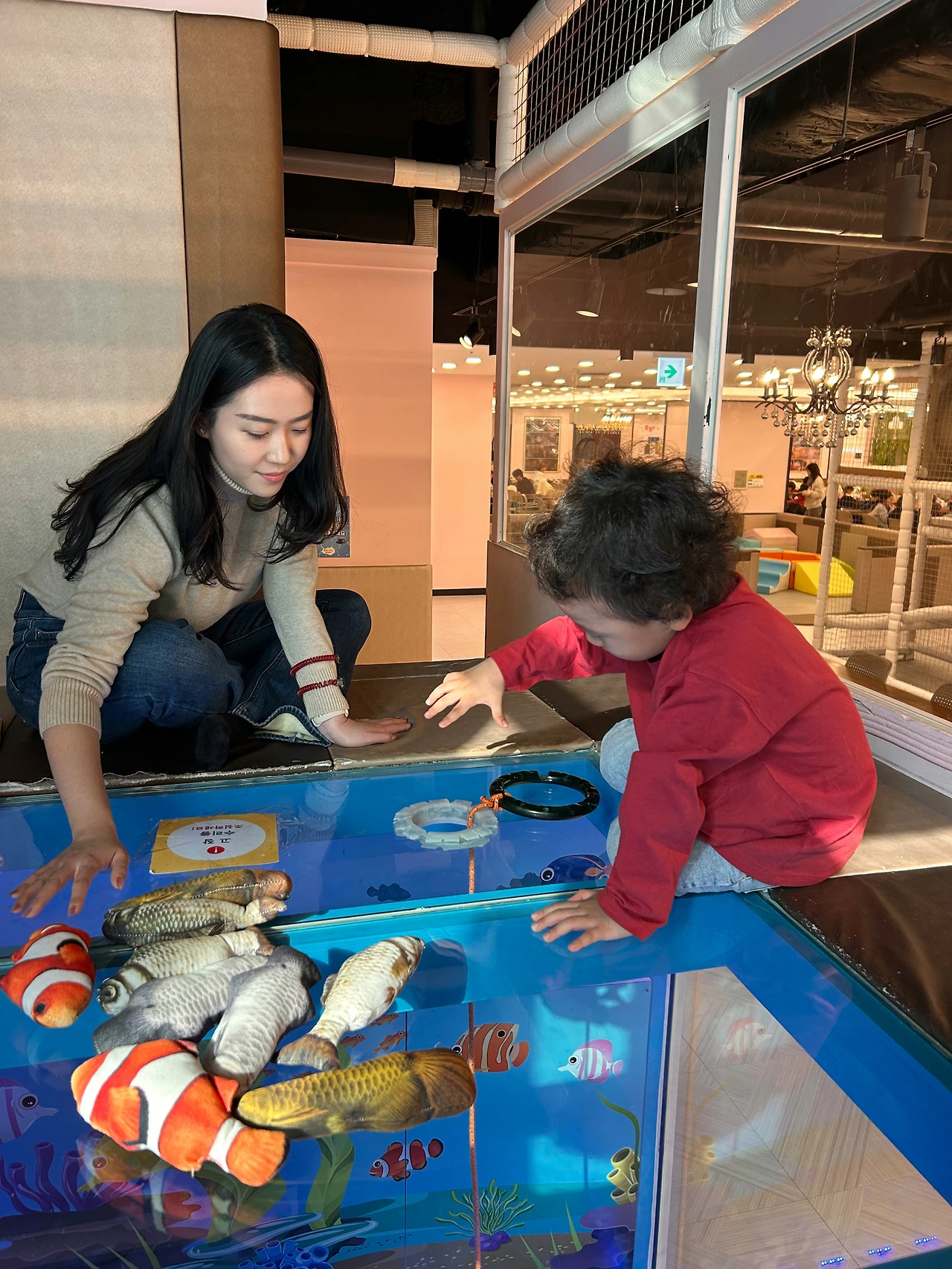 거절할 틈도 없이 아이에게 손을 붙잡혀 볼풀장에 들어섰고, 그는 미끄럼틀을 타면서 다양한 묘기를 선보였다. 그러다 갑자기 "붕어 잡으러 가자!"며 수족관 같은 게임장으로 뛰어갔다. 나는 정신없이 따라다니며 아이의 놀이 파트너가 되었다. 그렇게 한바탕 뛰어놀고, 땀까지 흘린 뒤 드디어 집으로 돌아가려는데, 친구의 아들이 내 손을 꼭 붙잡았다.