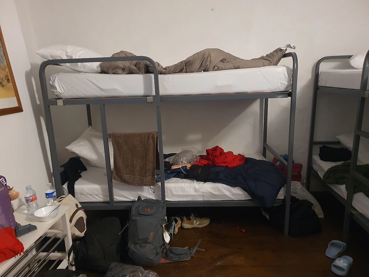 방 안으로 들어가니 네 개의 이층 침대가 사각형 모양으로 놓여 있었다. 어둑어둑한 방 안에서 남자 두 분과 여자 다섯 명이 각각 배정된 위치에 자리를 잡고 짐을 풀기 시작했다. 들었던 대로 남녀가 같은 방을 쓰게 되었고 화장실 두 개, 샤워부스 4개로 약 40 여명이 하룻밤을 공유하게 되었다.