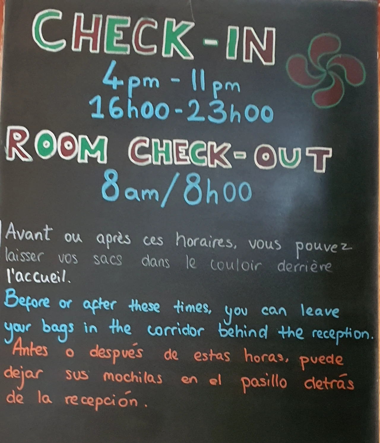 알베르게는 숙소, 숙박지, 작은 호텔이라는 뜻을 가지고 있다. 알베르게는 개인, 지자체, 성당 등에서 운영하는데 오늘 알베르게는 개인이 운영하는 곳이다. 우리가 첫 번째로 묵게 되는 알베르게 이름은 지트리 쉬망 베를 레뚜알이란 곳이다.