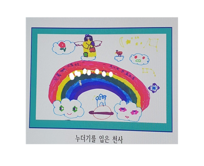 무지개 중앙 위 왼쪽엔 누더기를 입은 천사가