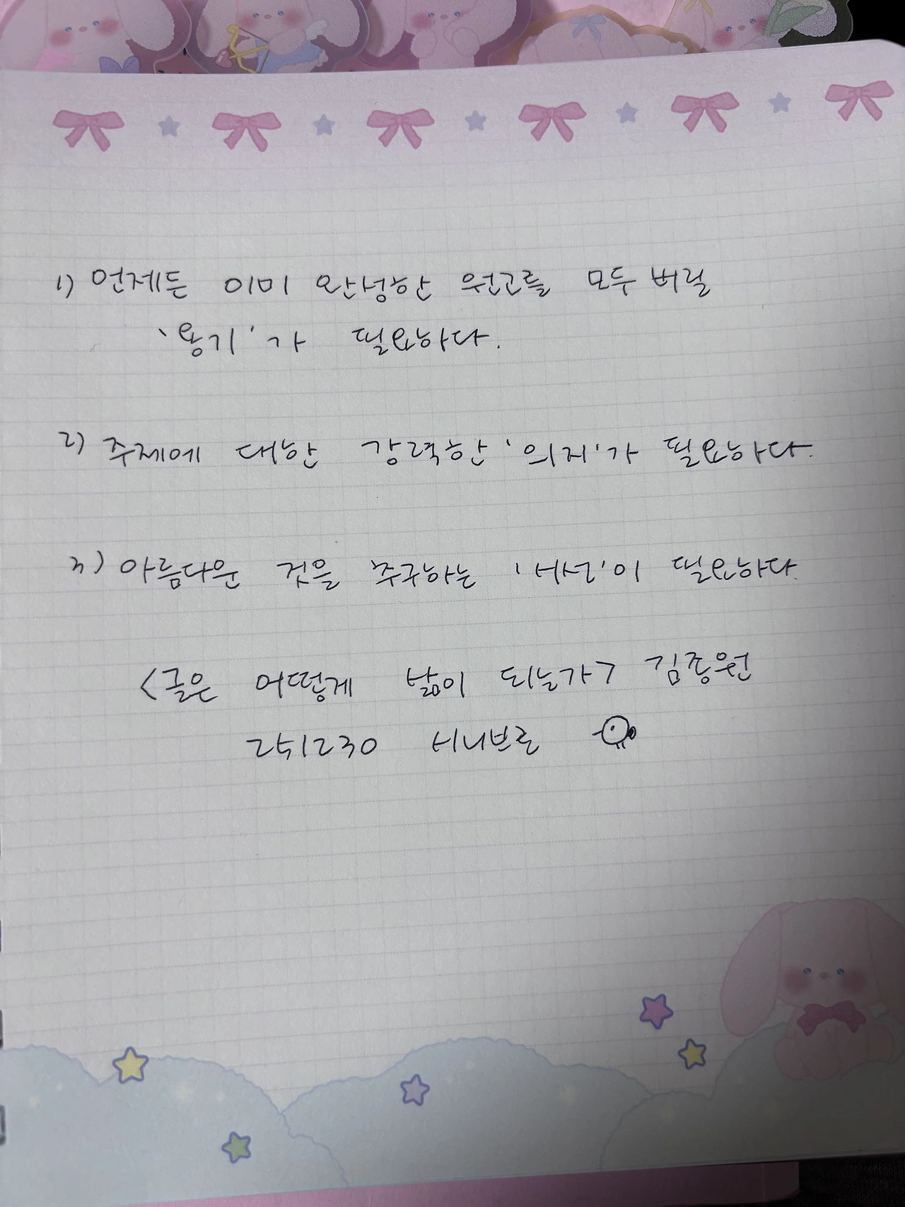 읽고 한 번이라도 적어 내 머릿속에 조금이라도 붙잡아 두고 싶다.