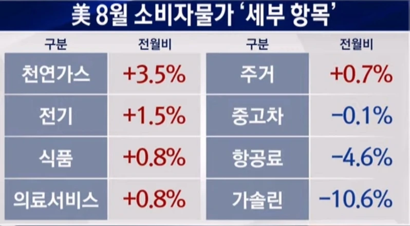 전월과 비교한 상승률은 0.1%(7월, 8.2%)를 기록했다. 에너지 가격이 떨어지면서 0.1% 하락했을 것이라는 월가 전망을 웃돌았다. 휘발유 가격이 한 달새 10.6% 떨어지는 등 에너지 부문은 5.0% 하락했다. 그러나 식료품(0.8%), 신차(0.8%), 의료서비스(0.8%), 교통서비스(0.5%) 등 식료품과 서비스를 중심으로 물가는 고공행진을 했다. CPI의 3분의 1을 차지하는 주거비(shelter)는 0.7% 상승했다. 근래 인플레이션이 단지 유가 폭등에 따른 것은 아니라는 방증이다.(소비자의 고정 지출 품목 인상)
