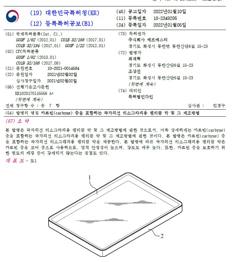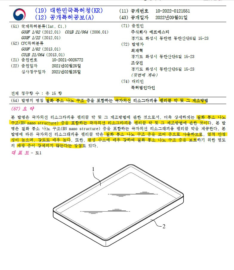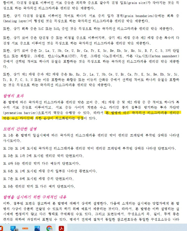 5. 최근 공개된 특허인 질화붕소 나노, 카르빈, EUV 펠리클 막, 통기성 프레임 관련도 EUV 펠리클 2세대를 위한 특허입니까?