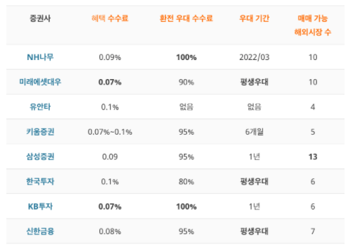 2022년 증권사별 달러 환전 및 해외주식 수수료