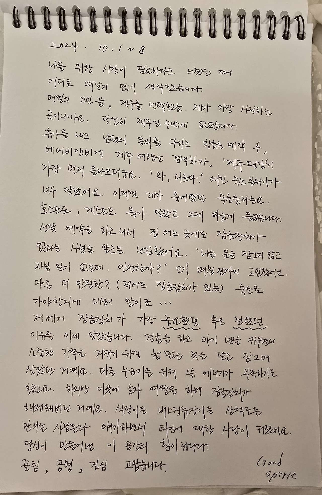 오늘 이 글을 쓰는 것도 나에게는 집 짓기다. 하나의 창을 내는 일이다. 애월에서 나의 집이 되어준 제주평강에 방명록을 남긴다.