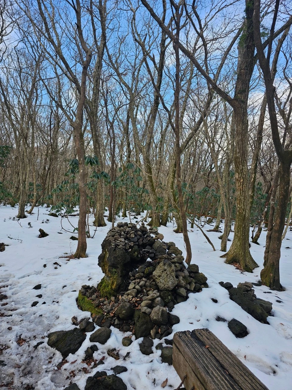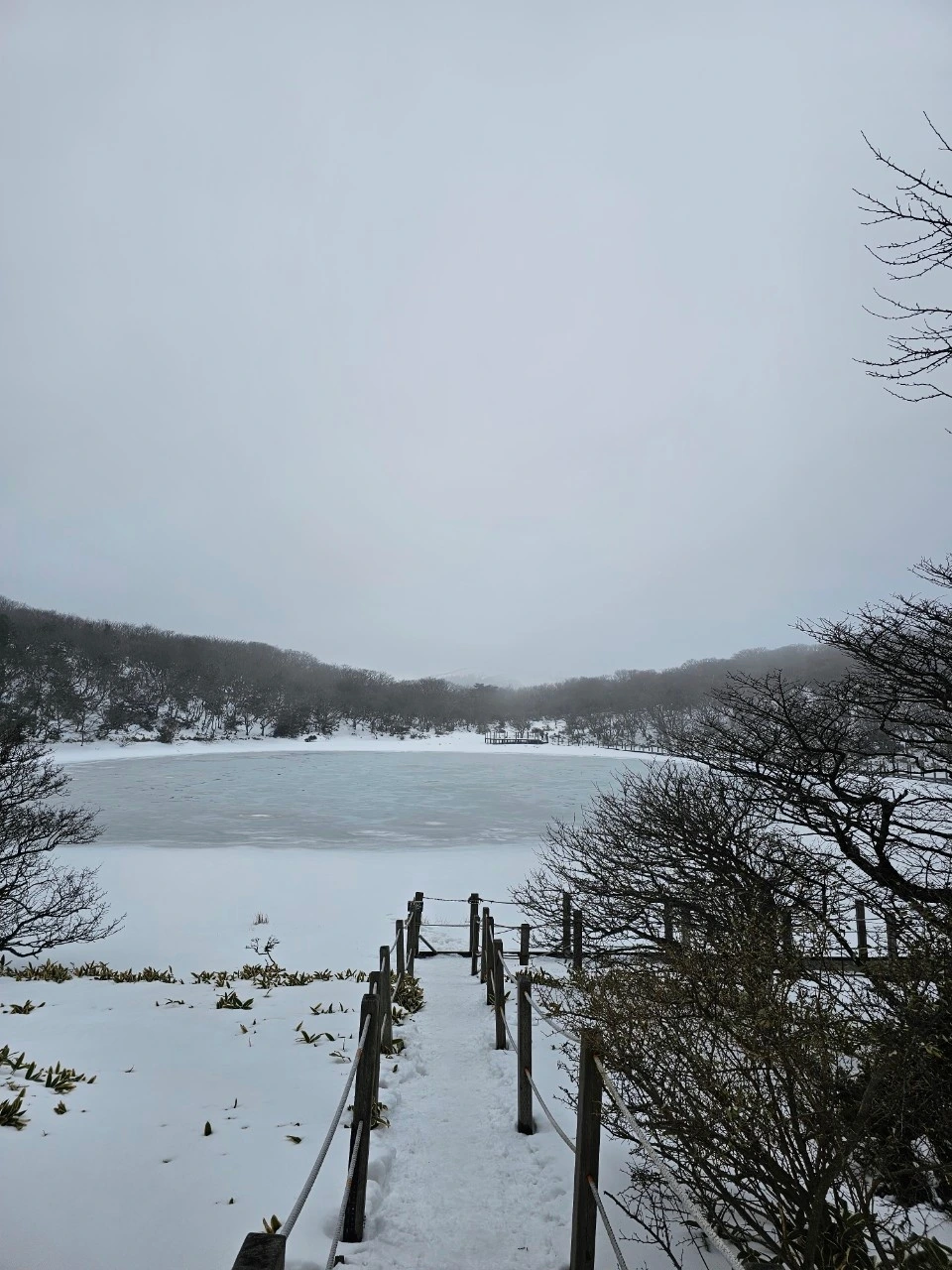 눈 덮인 산정호수에 멈추어