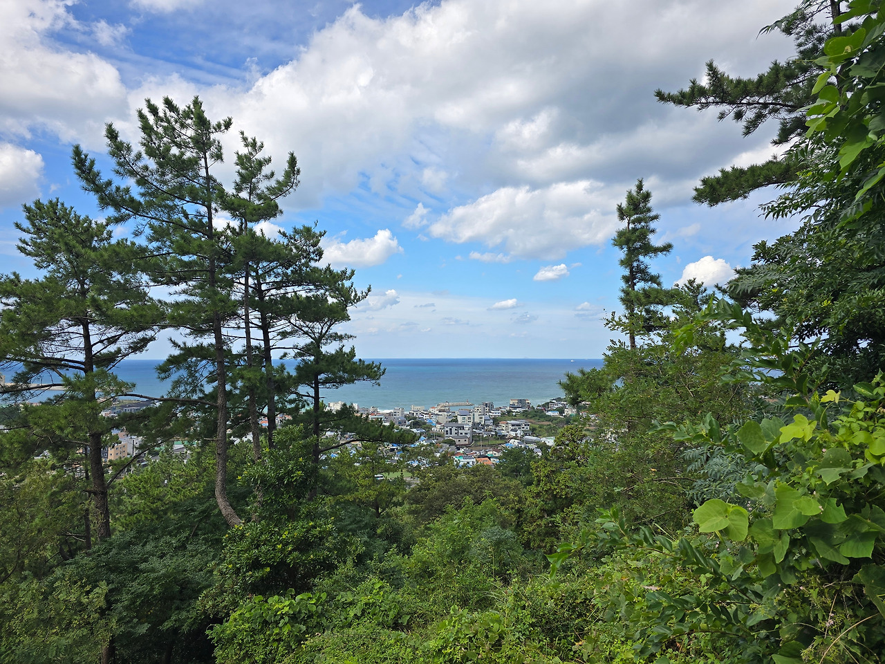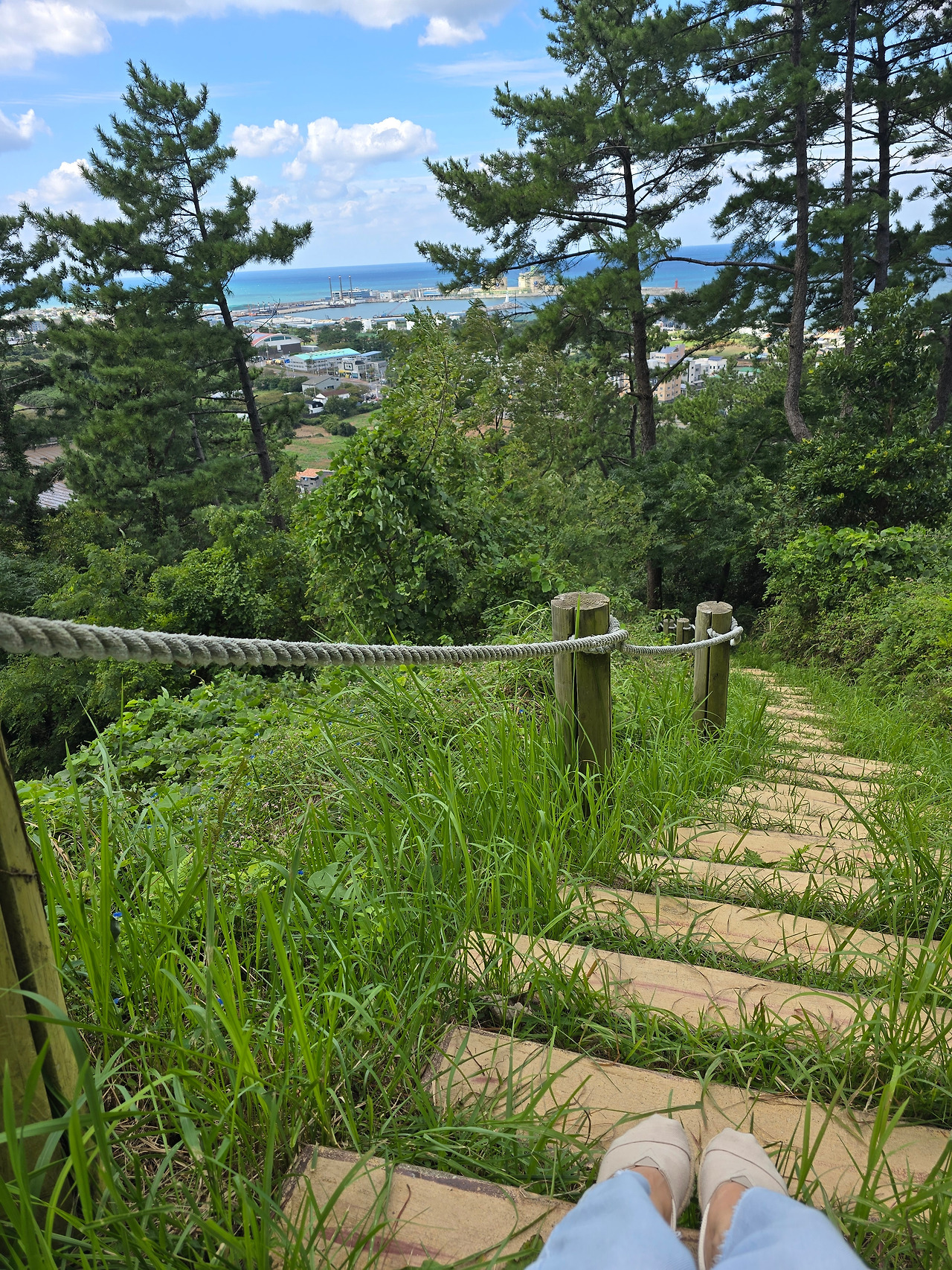 좁은 입구를 지나자마자 하늘이 활짝 열리고 나무계단이 맑은 날씨처럼 경쾌하게 뻗어있다. 5분이 채 되지 않아 나무 울타리 너머로 바다와 도시의 일부가 보인다.