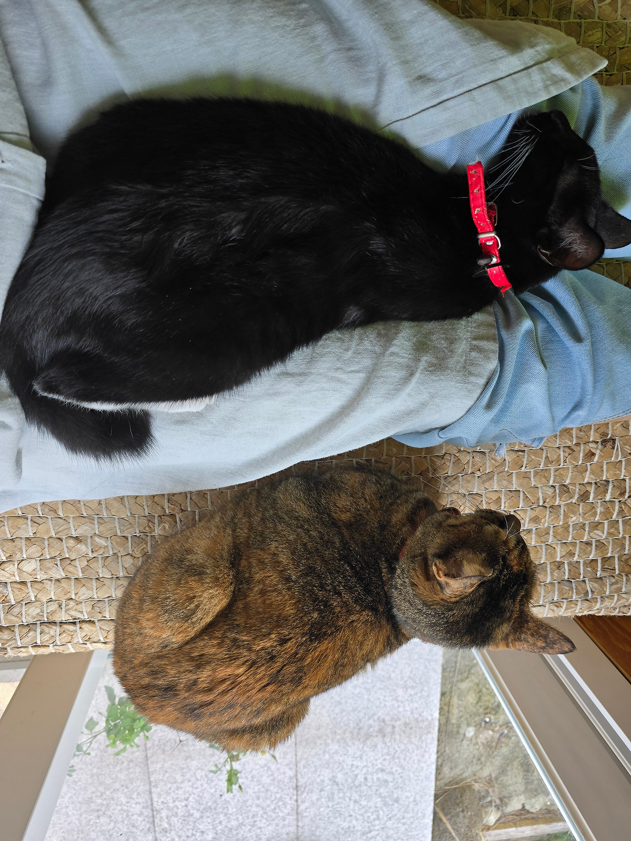저녁에 한담해변의 노을을 보기 위해 잠깐 휴식을 취하러 집에 들렀다. 아리와 두리는 그들만의 화평을 이루고 있다. 나는 간밤의 미운 마음은 뒤로 하고 잠시 그 화평의 일원이 되었다. 내가 좁은 마루에 자리를 잡자, 두리는 무릎으로 올라오고 아리는 옆에 착 자리를 잡았다. 언제나 두리가 더 적극적으로 자리를 선점하고 아리는 빈자리로 가곤 한다. 나는 지금 초고속 충전 중이다.