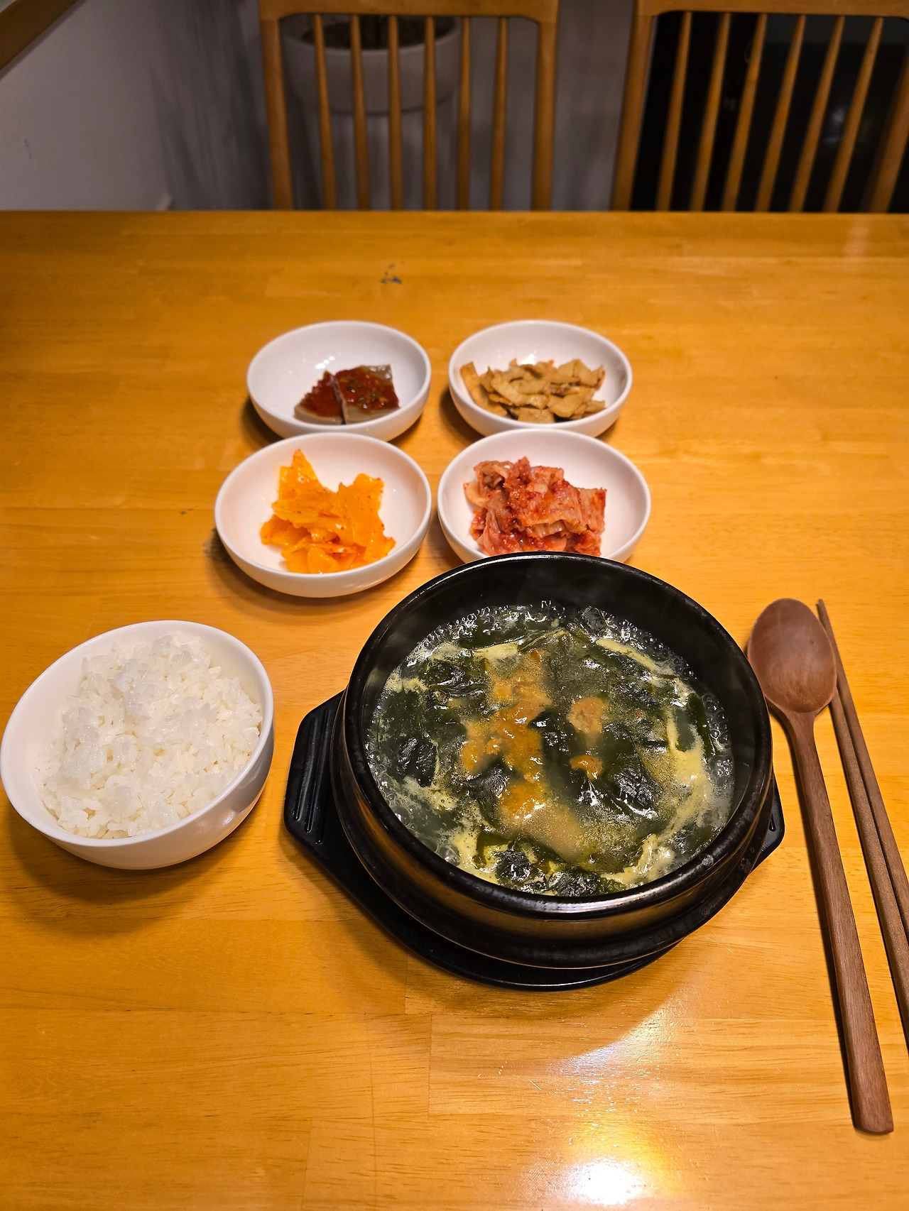 <육회한 애월>에서 유쾌한 하루를 마치는 나의 소울푸드 미역국을 먹는다. 아이를 낳을 때마다 몸조리를 도와준 엄마가 한달을 끓여주어도 질리지 않았던 바지락미역국, 황태미역국, 굴미역국, 소고기미역국, 감자미역국, 들깨미역국. 그 미역국들을 떠올리며 제주도에서만 먹게 되는 성게미역국을 먹는다. 이만하면 참 좋은 하루다.
