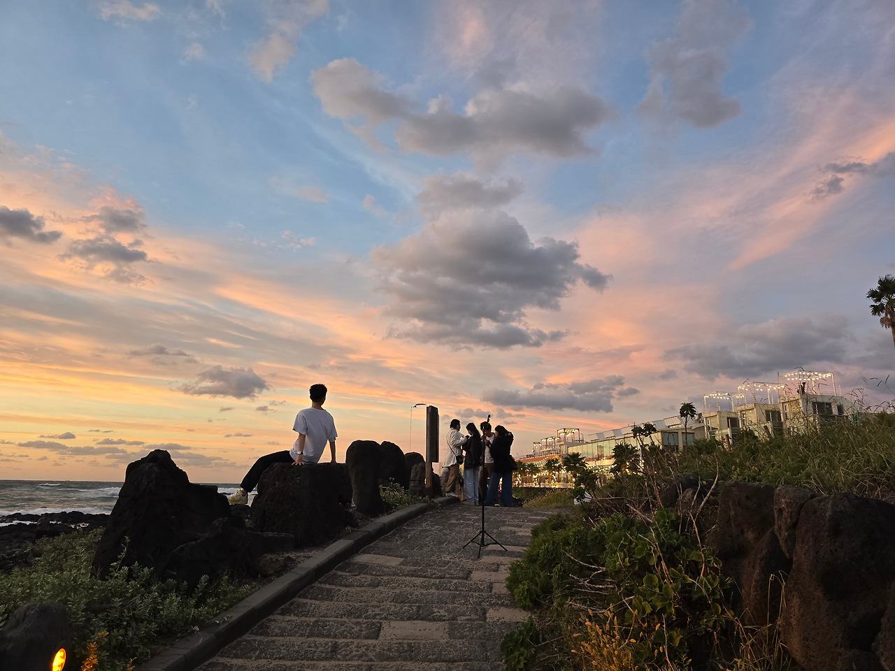 여행 이튿날, 그러니까 오늘 여행의 대미는(오로지 주관적인 기준에서) 한담해안 산책로에서 보는 일몰이다! 희한하다. 일상에서는 해가 뜨고 지는 것을 챙겨보려 하지 않는데 꼭 여행을 가면 그 지역의 해돋이와 해넘이를 봐야 할 것 같다. 오늘의 해넘이를 보기 위해 집을 나섰다. 혹시나 애월해안길로 걷다가 중간에 길이 끊기거나 잘못 들까 싶어 대로변 보행자로로 걸었다. 한담해안 가까이 오니, 애월읍에서 20분쯤 걸어온 것 같은데 여기는 완전 딴 세상이다. 대로변을 중심으로 대형 카페와 식당, 기념품가게 등이 즐비하고 관광객들이 북적북적하다. 대부분 중국인 관광객들이라 길을 걷다 들리는 중국어들은 마치 내가 중국여행을 온 것 같은 착각이 들 정도였다. 새로운 길을 익힐 겸 한담해안 산책로로 내려갔다. 산책로 초입에서는 기념사진을 찍는 사람들로 붐볐는데 산책로로 들어서 조금 걷다 보니 비교적 한산해졌다. 걷는 여행자들이 그다지 많지 않다는 걸 보여주는 대목이다.