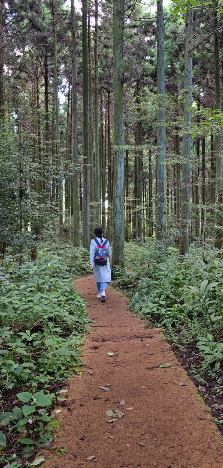삼나무 숲이 있는 평지에 도달했을 때, 카메라를 내밀며 걷고 있는 뒷모습을 찍어달라고 부탁하자, 민정은 30초짜리 영상을 찍어주었다. 내가 의아해하자, 태희는 이미 알고 있다는 듯이 말한다.