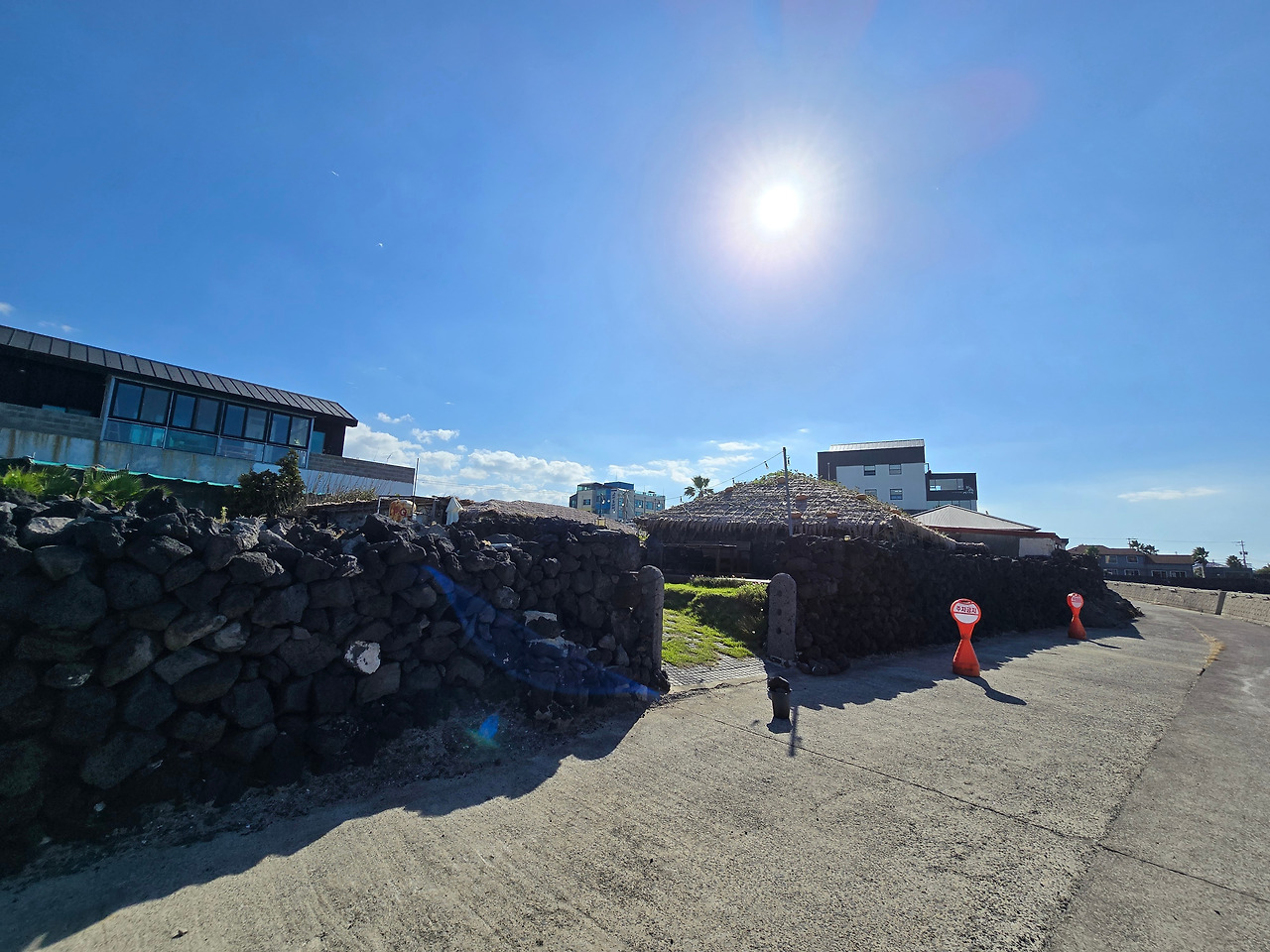 오늘날 내부를 전혀 볼 수 없는 데다 비밀번호 잠금장치가 있는 철제 현관문과는 대조된다. 그런 문에 익숙해질수록 갑자기 집에 찾아오는 손님과의 대면식 소통은 더욱 불편해질 수밖에 없다. 그렇기에 잠금장치가 없는 제주평강은 정낭과 같은 맥락으로 이번 여행에서 내가 사람들을 더 쉽게 받아들이고 소통하게 만드는 데 한몫을 하는 것 같다. 빗장 풀린 나는언제 어디서 누구와라도 얘기할 준비가 되어 있다.