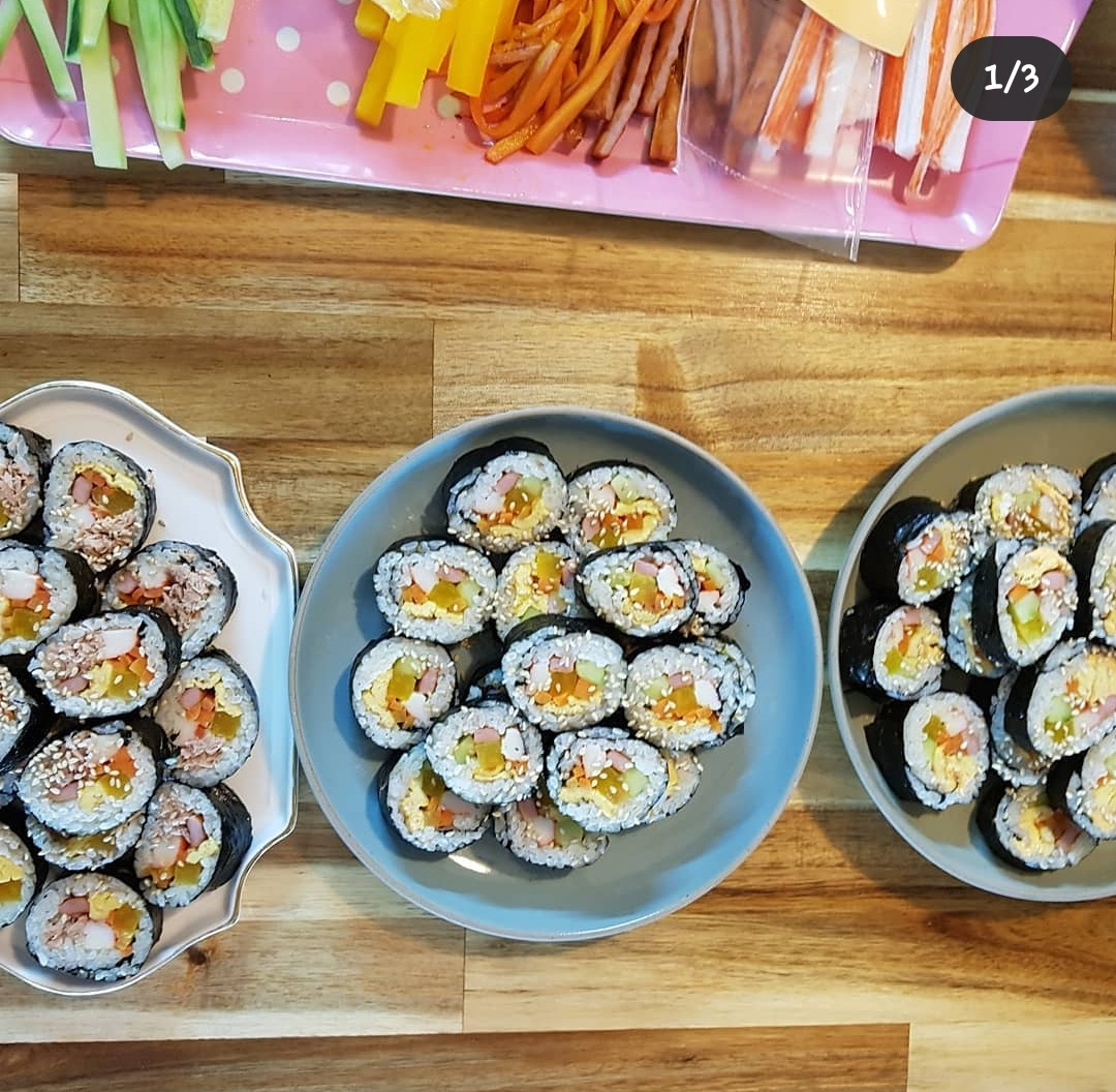개성 강한 삼남매가 다 같이 좋아하는 몇 안되는 메뉴인 김밥도 3가지버젼으로 준비한다.