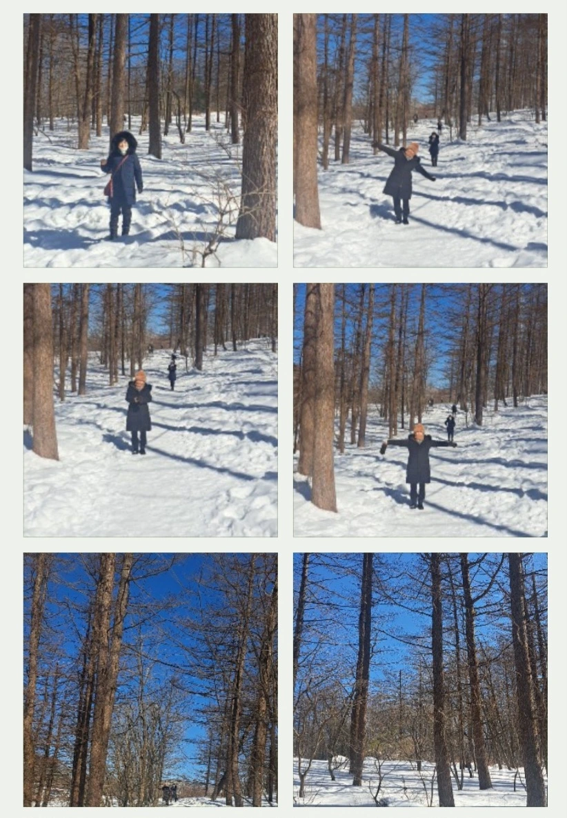 순백의 맑은 공기 하얀 눈 길에서