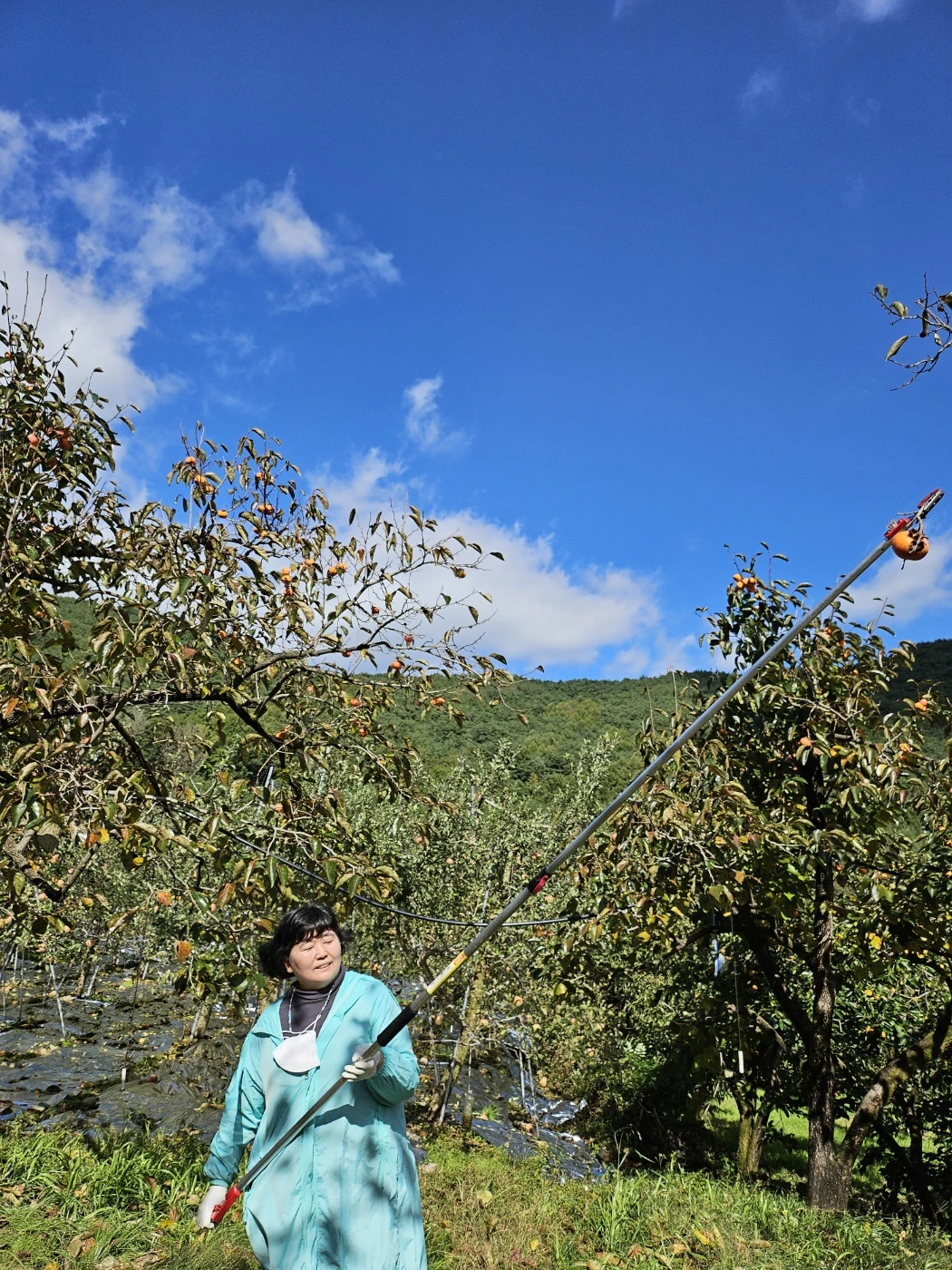 장대의 방향에 따라 감을 바닥에 떨어뜨리게 되기도 하고 콕 집어서 바닥까지 안전하게 따 내리게 되기도 한다. 기술 습득 완료다.