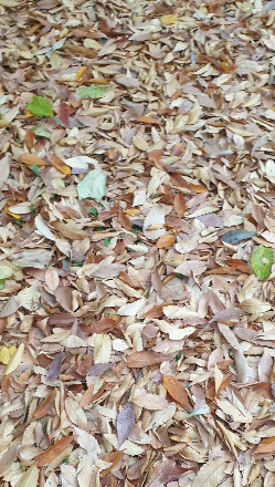 나무 밑에 깔린 낙엽들 속으로 기어들어가