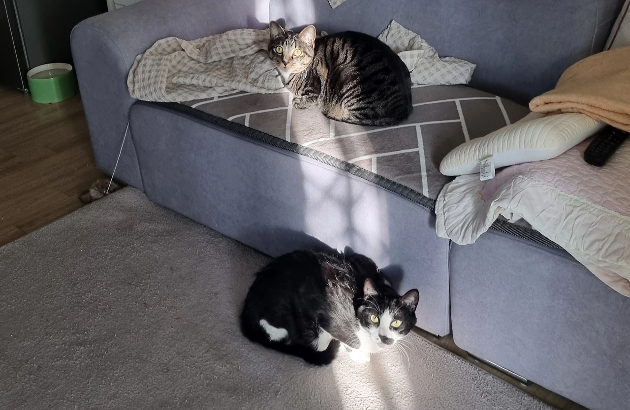 전에 살던 집은 사방에 창문이 있어서 햇빛이 정말 잘 들었다. 창가에 캣타워를 두고 아이들이 햇빛을 쬐기 충분했다. 낮에 햇빛을 맞으며 나른해하는 모습을 보는 게 집사인 나에게도 힐링이었다.