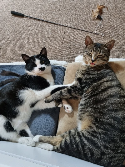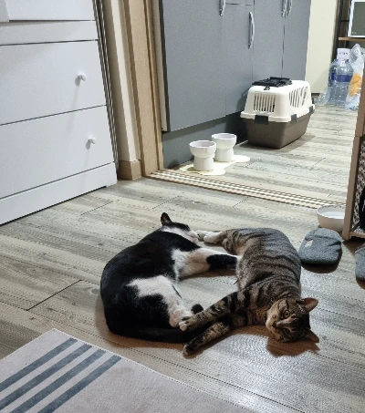 그냥 깜이가 형아라고 정했다. 깜이가 대범한 면이 있어서 경계상황에서는 항상 먼저 다가가 본다. 냄새를 맡거나 먼저 건들건들하고 있으면 사랑이가 다 멀리서 지켜보고있다. 깜이가 사용하는 것을 보고 그제서야 안심하고 조심스럽게 다가온다. 그러니 깜이가 형아라는 나의 주장은 나름 근거가 있다.ㅎㅎ
