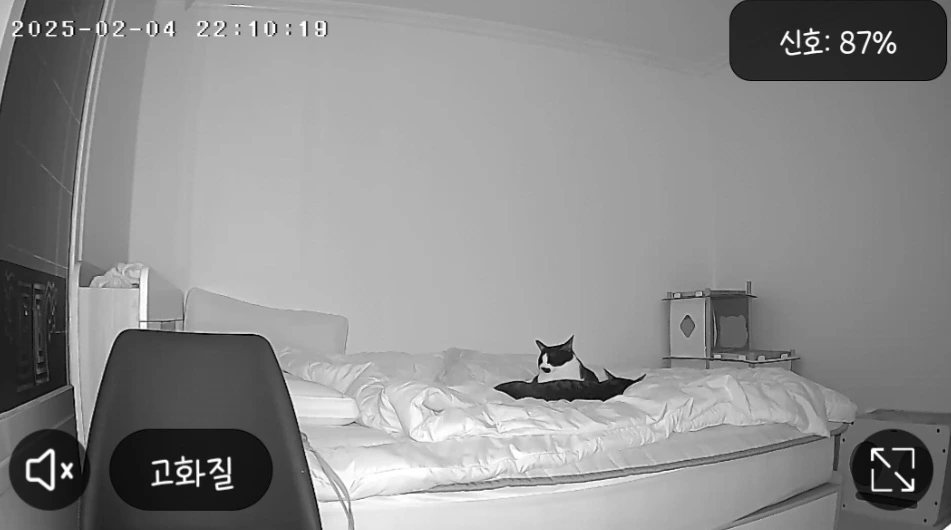 사실 나는 전화를 검과 동시에 홈캠을 열어보았고, 침대에 앉아있는 깜이와 사랑이를 보고 있었다.