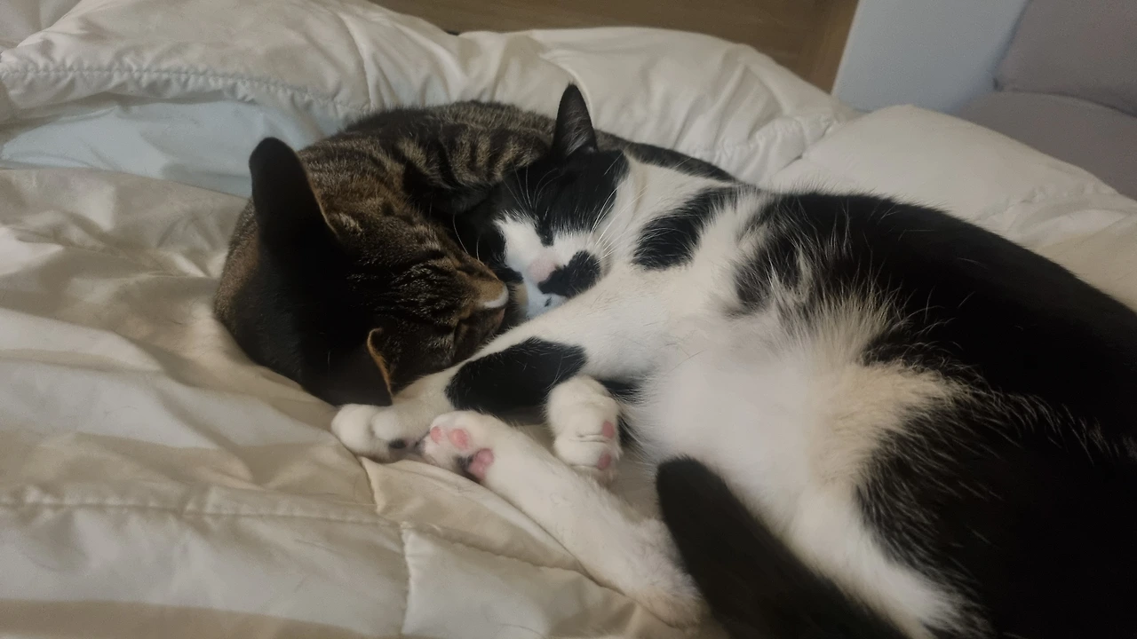 나의 옆에는 사랑이와 깜이가 서로의 몸에 얼굴을 파묻고 깊이 잠들어있다.