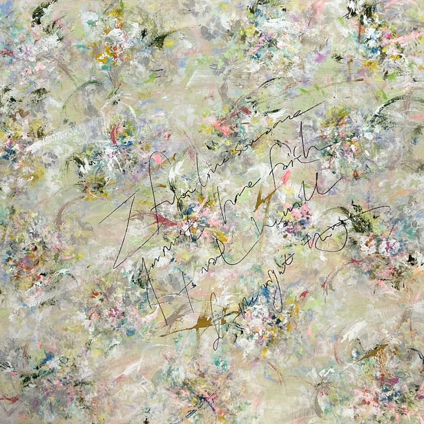 이 작품은 앞서 말씀드렸듯이 처음엔 정리되지 않은 생각들로 큰 붓질부터 시작했어요. 그렇게 붓이 점점 작아지고 터치가 섬세해질수록 오늘의 문구가 조금씩 구체화되어 마음에 와닿기 시작하더라고요. 마침내 작품이 완성되었을 때는 믿음이라는 무게가 이 작품에서 고스란히 느껴졌어요.