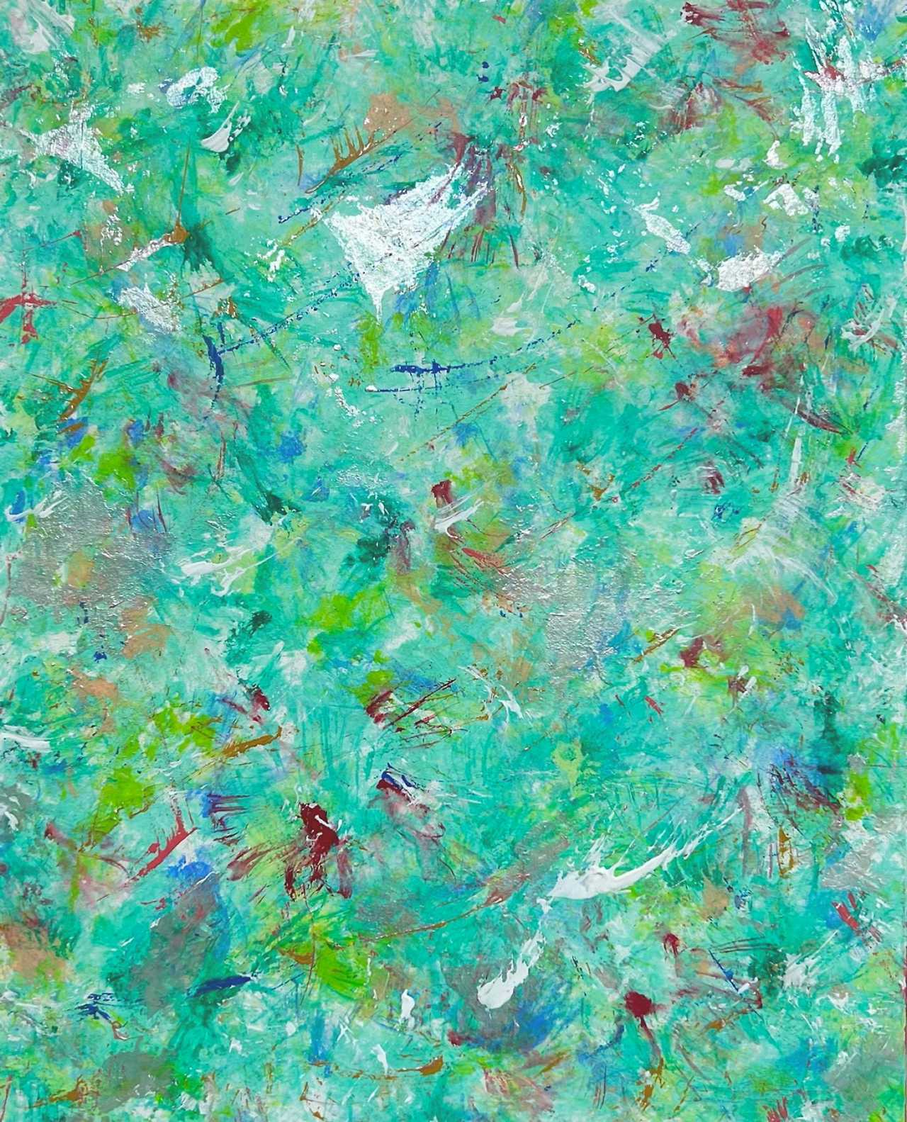이 작품의 포인트색은 바로 보이는 민트색이에요. 민트초코를 좋아하는지 아닌지로도 대척점을 만들어 서로 다른 의견을 존중하기보다는 편을 나누는 것에 답답함을 느껴 이 작품을 작업할 때만큼은 “에잇 그런 거 다 모르겠고 난 그냥 내가 좋아하는 거에 집중할래”라는 생각으로 자유롭게 붓질을 이어나갔어요. 강렬한 빨강 테두리도 고민을 일절 안 하고 꽂히는 대로 ”지금 내가 끌리는 것“에만 집중하며 작업을 했어요. 그래서인지 이 작품을 보고 있으면 저도 모르게 답답함이 사라지고 시원한 느낌을 받는 것 같아요.