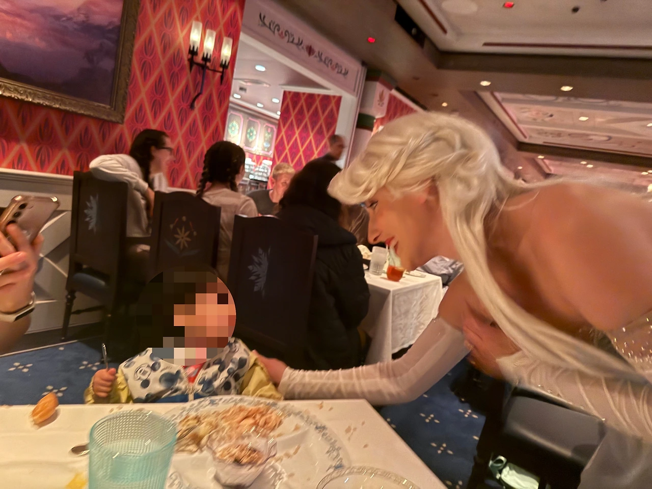 즐거운 섬에서의 시간을 다 보내고 우린 배에 돌아갔다. 햇빛 아래 아이들은 탔고 우린 충분히 비타민 D를 섭취하며 광합성을 했으니 이제야 휴가온 느낌의 피부톤이다. 크루즈 마지막 날, 우리의 저녁 식사는 애나와 엘사의 나라, 프로즌의 나라 아렌데일로 향했다. 우리 여기서 애나, 엘사 공주님 만날 수 있는 건가요?