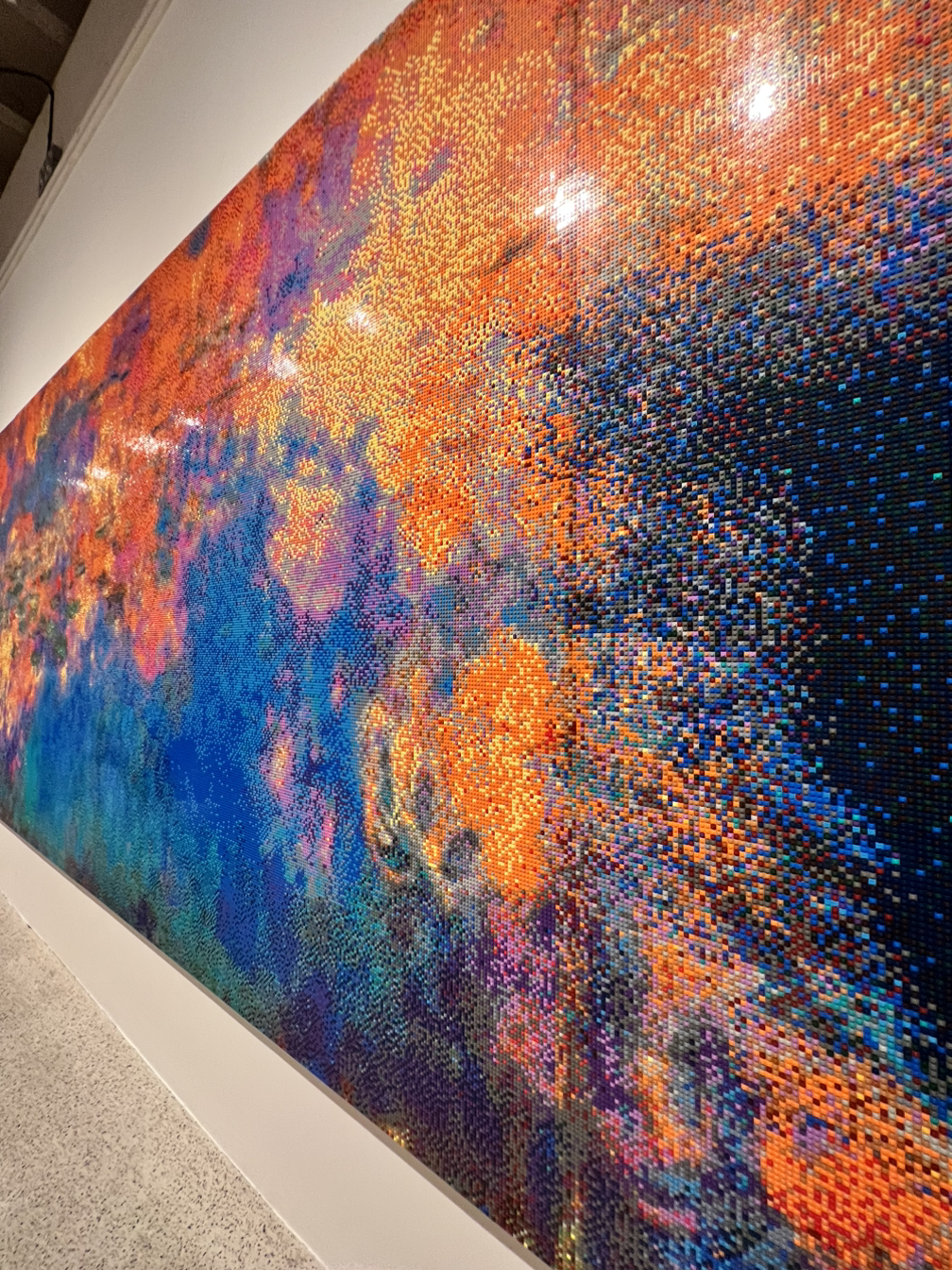 벽의 한 면을 가득 채운 플라스틱 조각들은 인상파 화가가 포착하고자 했던 빛과 색의 만남을 현대식으로 해석했다. 공장에서 만들어진 수만 개의 플라스틱 블록의 일정한 색과 모양은 한 곳에 어우러져 모네 작품의 목적, 즉 색의 하모니를 이룬다. 다만 모네는 물감을 섞어 고유의 색을 만들었다면 Ai WeiWei는 주어진 색을 조화롭게 만드는 일을 했다는 것이다.