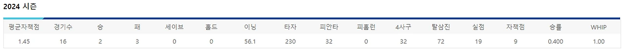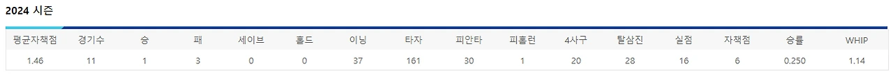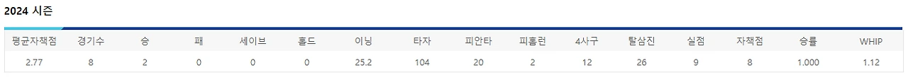 제구도 25이닝 소화하는 동안 사사구는 12개 밖에 내주지 않았고, 그 동안 삼진은 26개가량 잡아내며 꽤 무난한 모습을 보여준 선수.