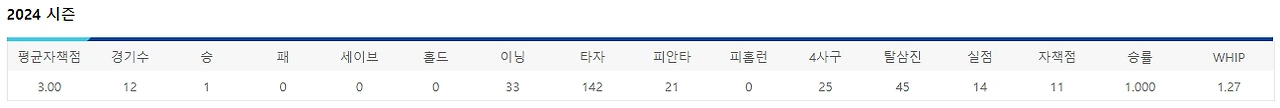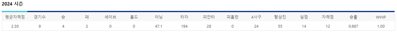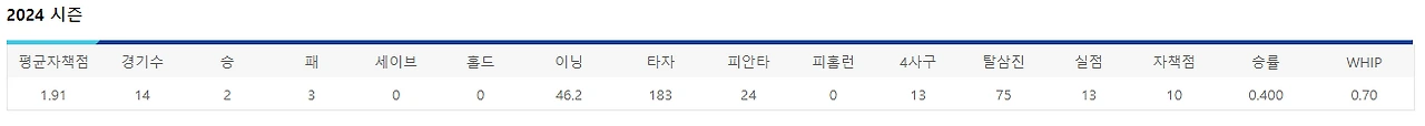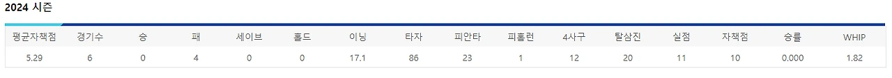 이닝 소화도 23시즌보다 거진 3분의 1가량 적게 했는데, 사사구 수는 거의 비슷하고, 피안타수도 3분의 2가량 맞아나갔다.
