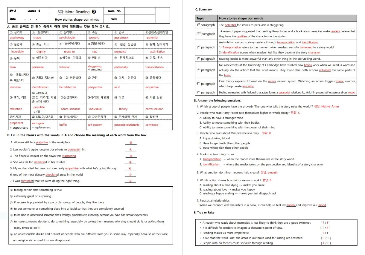 영어식 사고를 가능하게 하기 위해 오늘 학습지의 해석본은 특히 직독직해식으로 해보았습니다. 간혹 혼란이 예상되는 문장은 우리말 순서에 맞게 다시 정리해두었습니다. 도움이 되었으면 좋겠습니다.