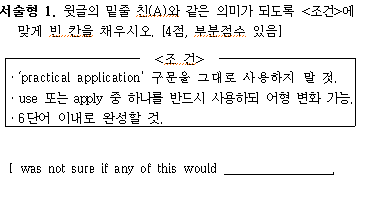 선다형 문제든 서술형 문제든 그 본질은 주어진 정보를 빠르게 이해하고 핵심을 영어로 정확히 간결하게 표현하는 능력이 필요하다. 그럼에도 불구하고 많은 영어 학습자들은 문법 지식이 없어서 그런 능력이 생기지 않는 줄 오해한다. 하지만 정보를 정확히 그리고 간결하게 표현하는 능력은 문장에 대한 명시적 규칙만을 안다고 생겨나는 것이 아니다. 영어로 간결하게 표현하는 능력은 소위 우리가 영어 문법이라 일컫는 그 단어 형태에 대한 규칙 뿐 아니라 글 전체 분위기와 상황에 맞는 문체와 표현에 대한 암묵적 이해가 있어야 가능한 일이다.