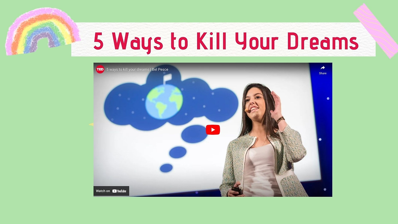 그녀는 꿈을 이루는 5가지 방법을 역설적으로 설명합니다.