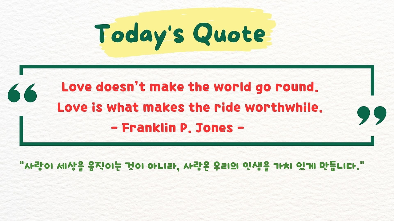 늘 스터디 앞부분에 하는 오늘의 명언과 오늘의 영어 회화 표현은 멤버 중 한 명이 지원하신다. 초반에는 다들 차일 피일 미루시더니 이젠 매 모임의 끝자락에 지원을 해주시는 분이 계신다. 이젠 제법 어떻게 해야 할지 감을 잡으셨던지 펑크 내시지 않고 잘 준비를 해주신다. 영어 전문가로 모임을 운영하지만 다들 자신의 상황에서 기여할 수 있는 부분을 내어주시니 나 혼자 주도적으로 끌고 가는 모임이 아니라 함께 이끌어가는 모임으로 그 자리를 차츰 잡아가고 있다. 덕분에 매번 스터디 모임 준비에 부담이 많이 줄어 들었다.