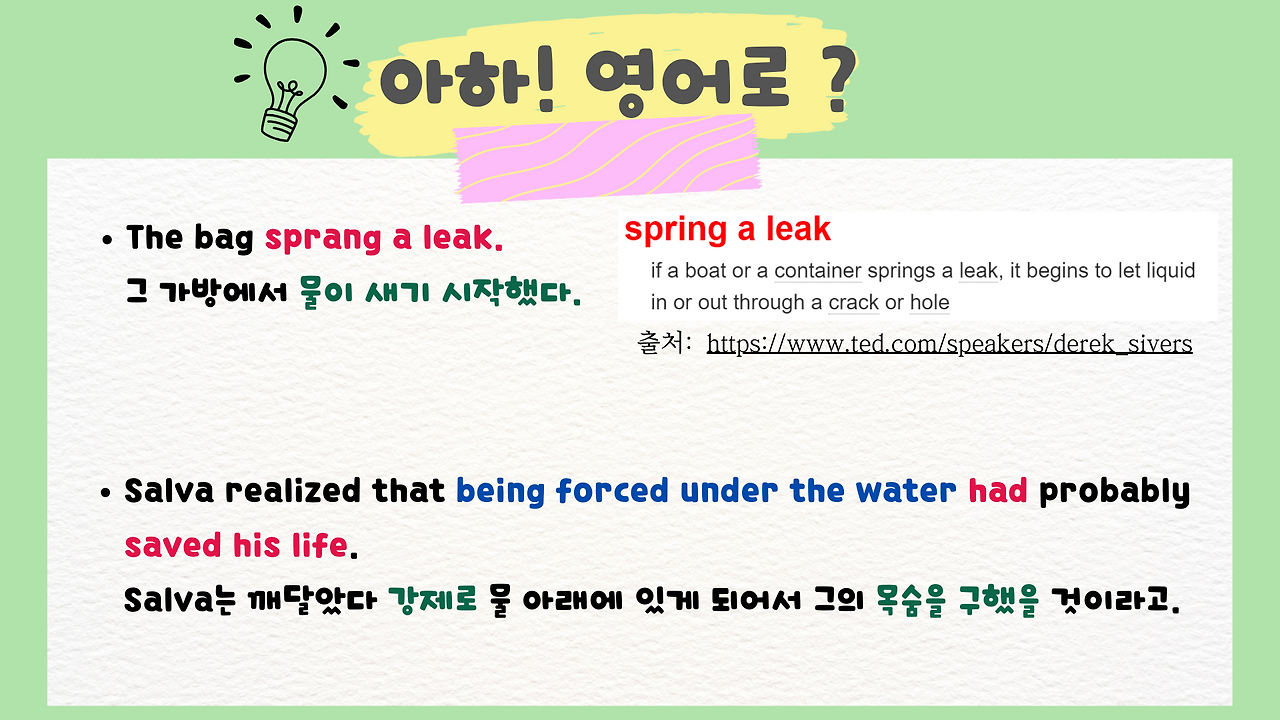 스터디 멤버 중 한 분이 공유한 오늘의 격언입니다. 자주 들어본 표현 같지만 원어민 앞에서 바로 딱 나오기 어렵던 표현인데요. 오늘 한 번 더 익혔습니다.