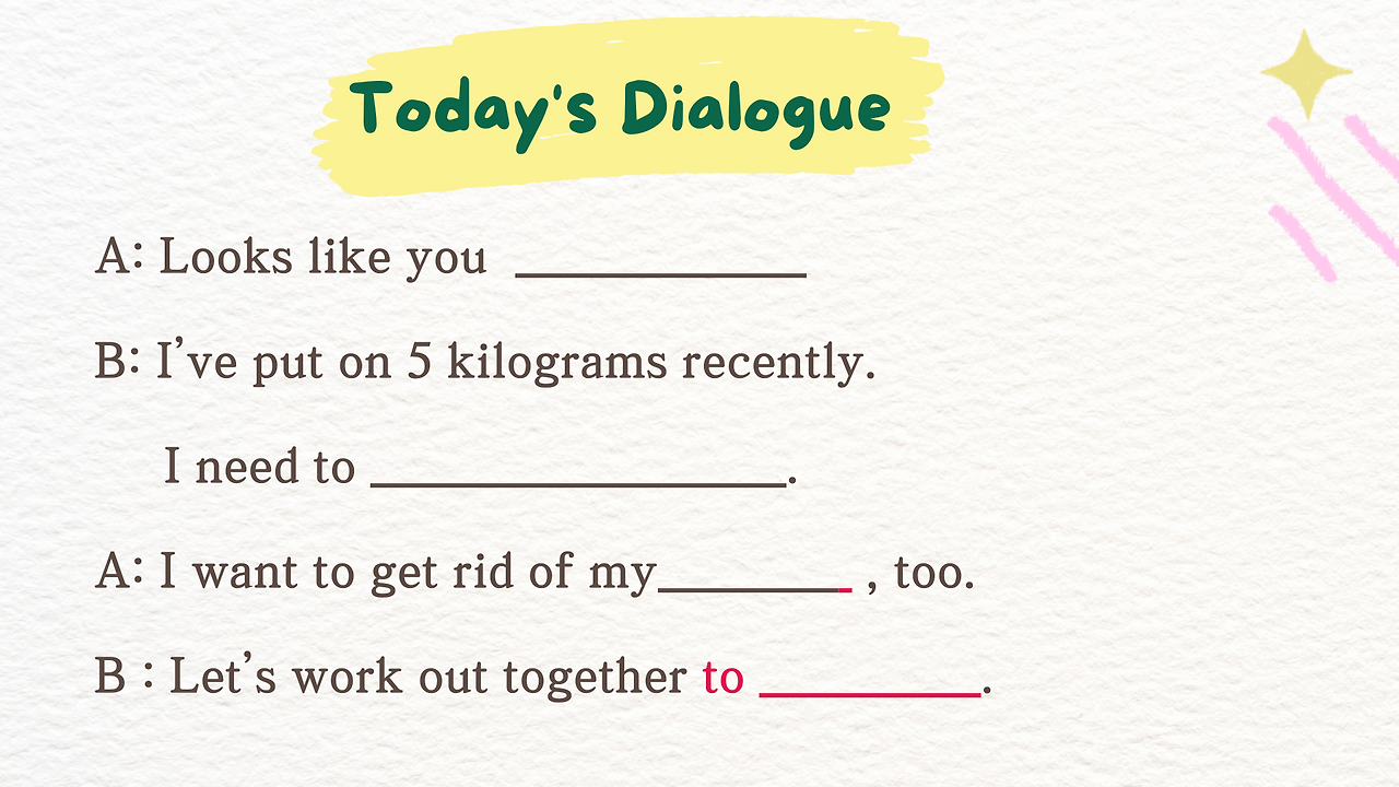 그럼 위의 표현 이외에 다이어트와 관련된 표현을 대화로 공부해봐요.
