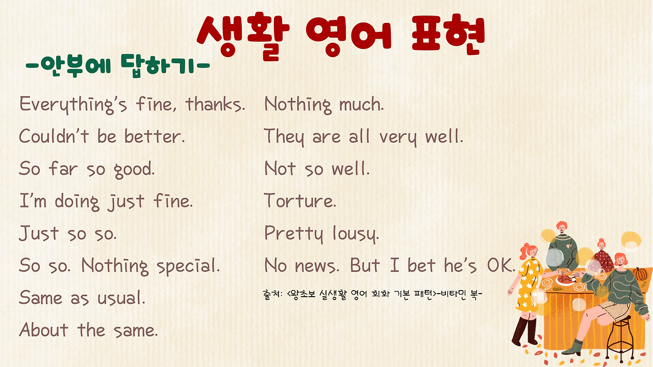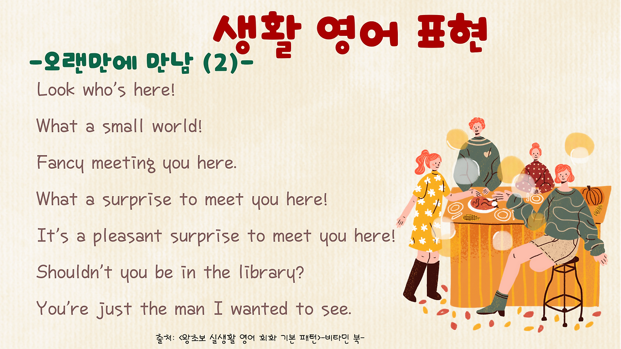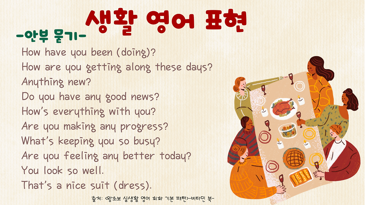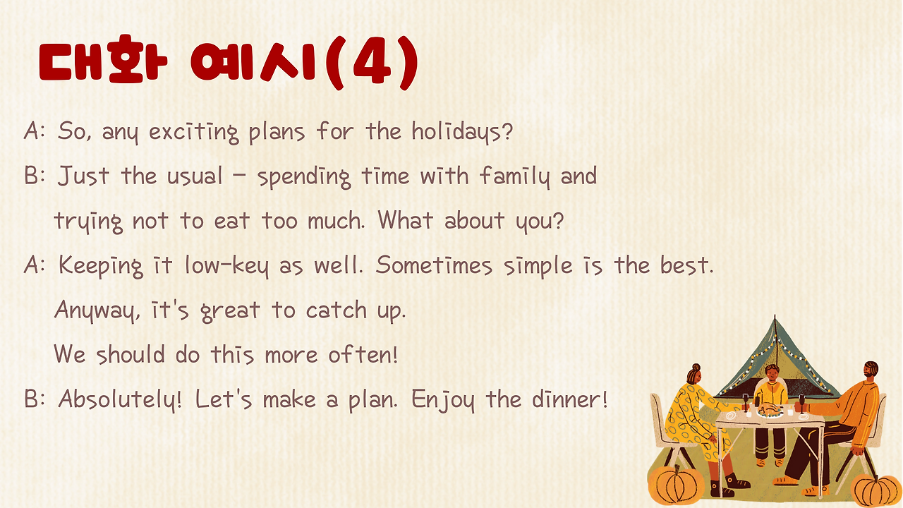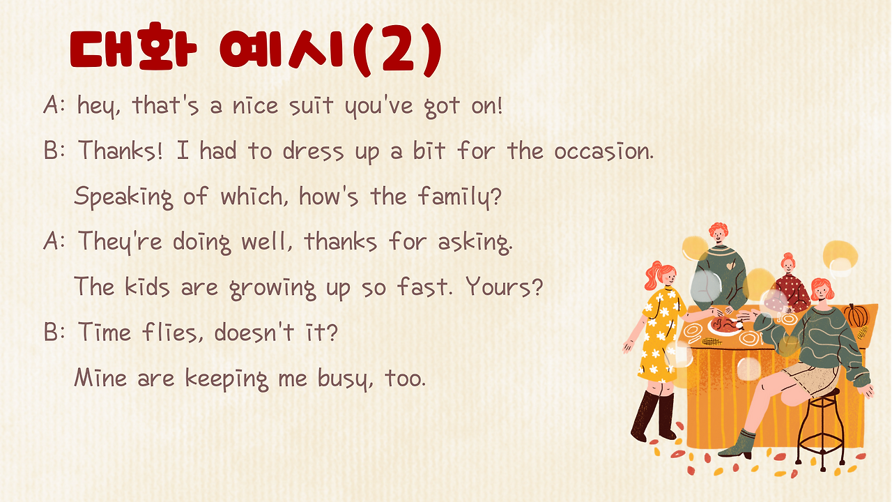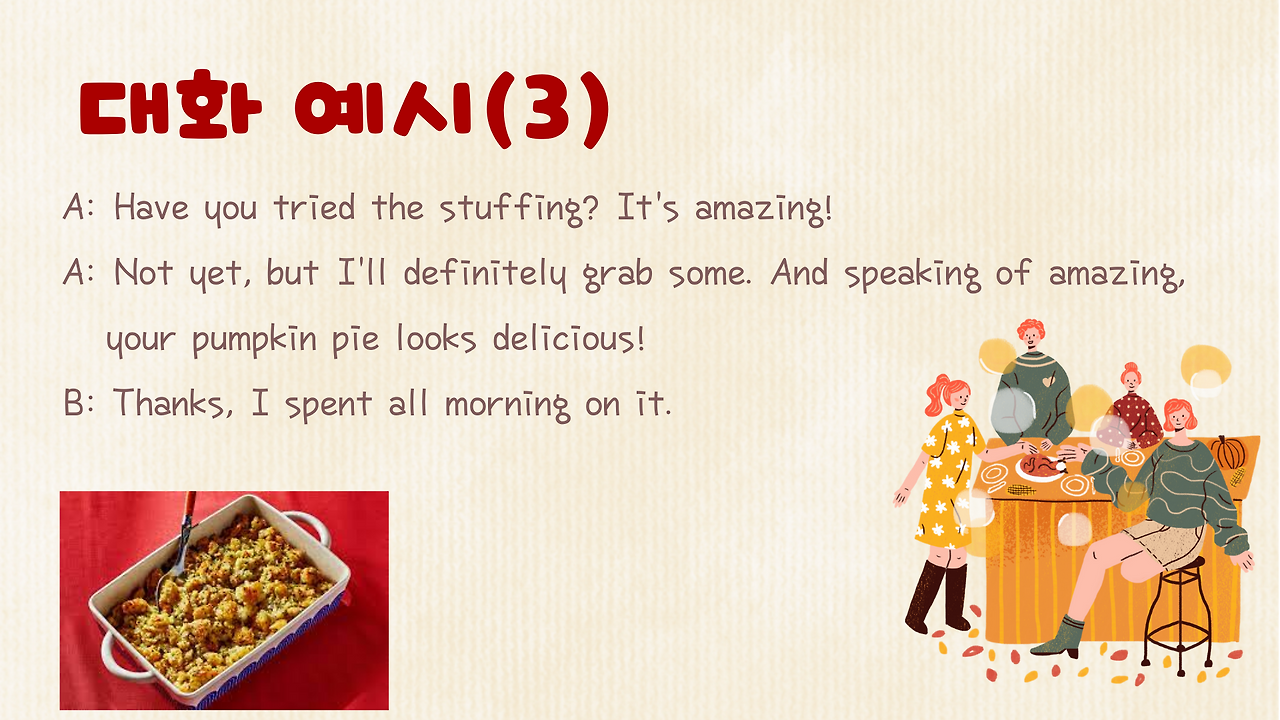 2. 생활 영어 표현과 상황극: 안부 묻기 및 답하기/ 추수감사절 같은 식사 테이블에서 나누는 영어 대화 연습