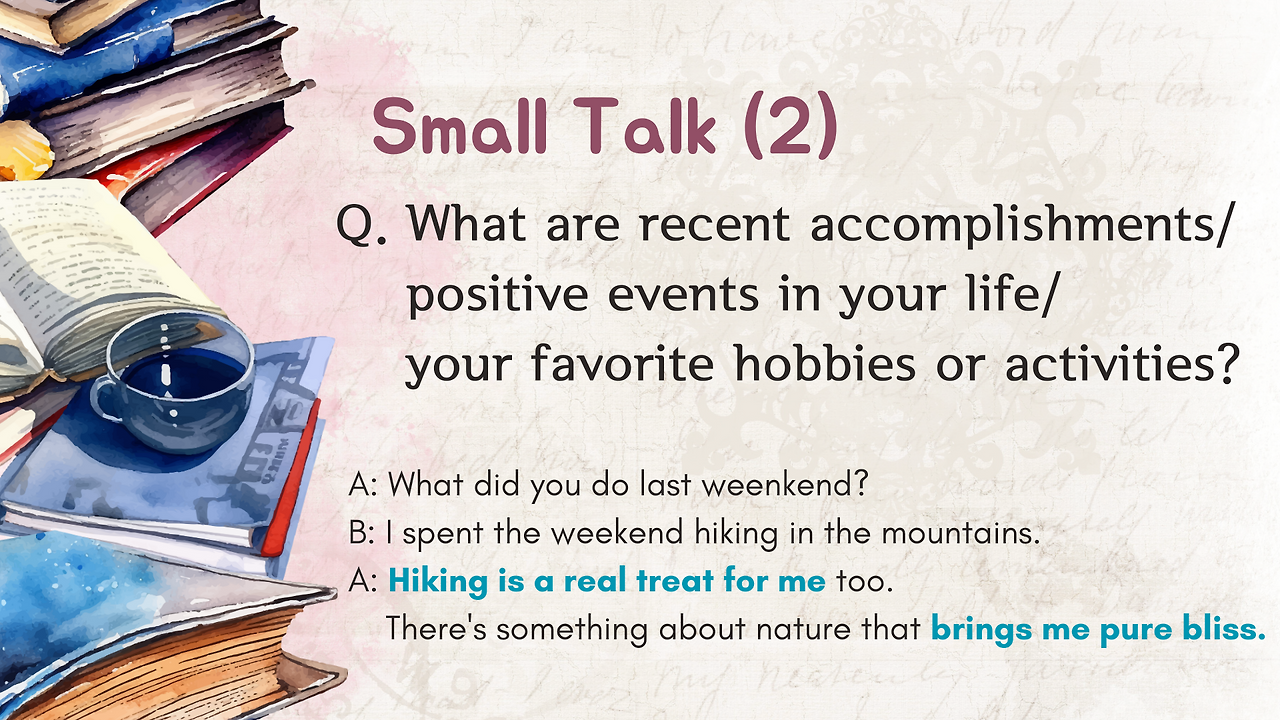저희는 새로우신 분들과 영어로 이런 주제로 이야기를 나누어봤습니다. 여러분도 혼자서라도 위 질문에 영어로 한번 중얼중얼(?) 해보실래요? 영어실력은 혼자 중얼거림이 많을 수록 는다는 사실 알고 계십니까? 저도 혼잣말 진짜 많이 했어요. ㅋㅋ 가끔은 꿈도 영어로 꾸는 적도 있어요. 지극히 정상적인 증상이니 염려하시지는 마시고 각자 혼자 영어로 말하기 삼매경에 한번쯤은 빠져보시길 강추드려요.