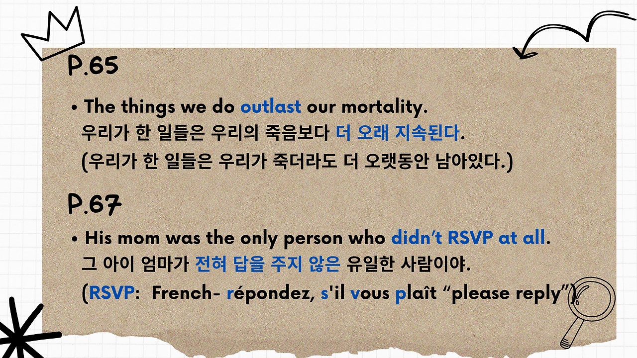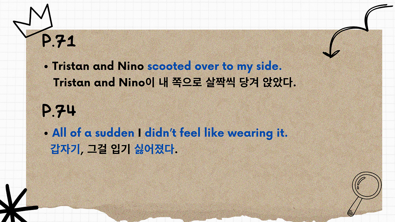 4. 챕터북: <Wonder> P. 64~ P.84 낭독 및 주요 표현 정리
